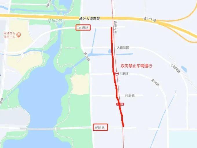 静海大道(朝阳路至兴通路)双向禁止车辆通行。