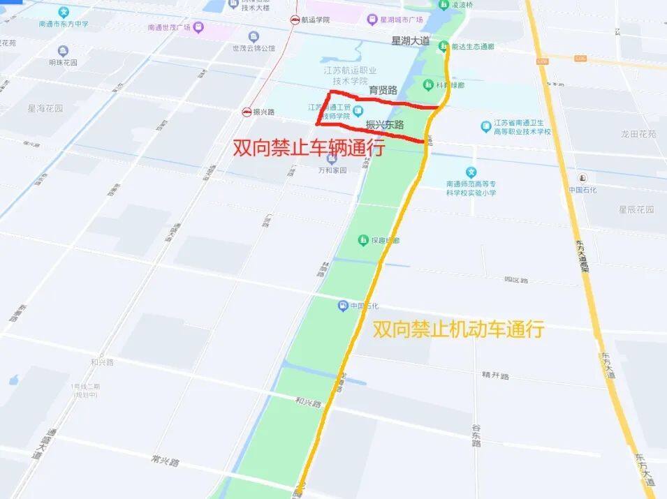 育贤路(龙腾路至广贤路)、广贤路(育贤路至振兴东路)、振兴东路(广贤路至龙腾路),双向禁止车辆通行。