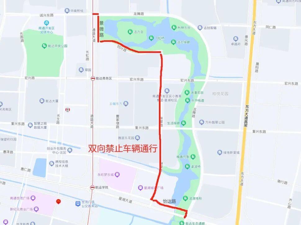 龙腾路(通盛大道路口至景微路口,含通盛大道路口)、景微路(龙腾路至创兴路)、创兴路(景微路至林翠路)、林翠路(创兴路至怡达路)、怡达路(林翠路至龙腾路)、龙腾路(怡达路至星湖大道,含星湖大道路口),双向禁止车辆通行。