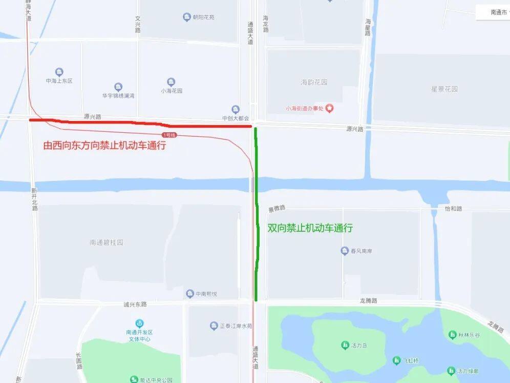 通盛大道(源兴路至龙腾路,不含龙腾路口)双向禁止机动车通行。