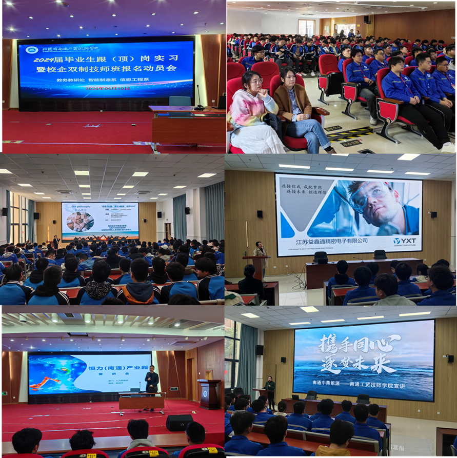 近日,江苏省南通工贸技师学院智能制造系与教务教研处(校企合作办)联合江苏科瑞恩科技股份有限公司、江苏恒科新材料有限公司、南通中集能源装备有限公司等7家规上企业,开展了定制技师班企业在校内的宣讲活动。
