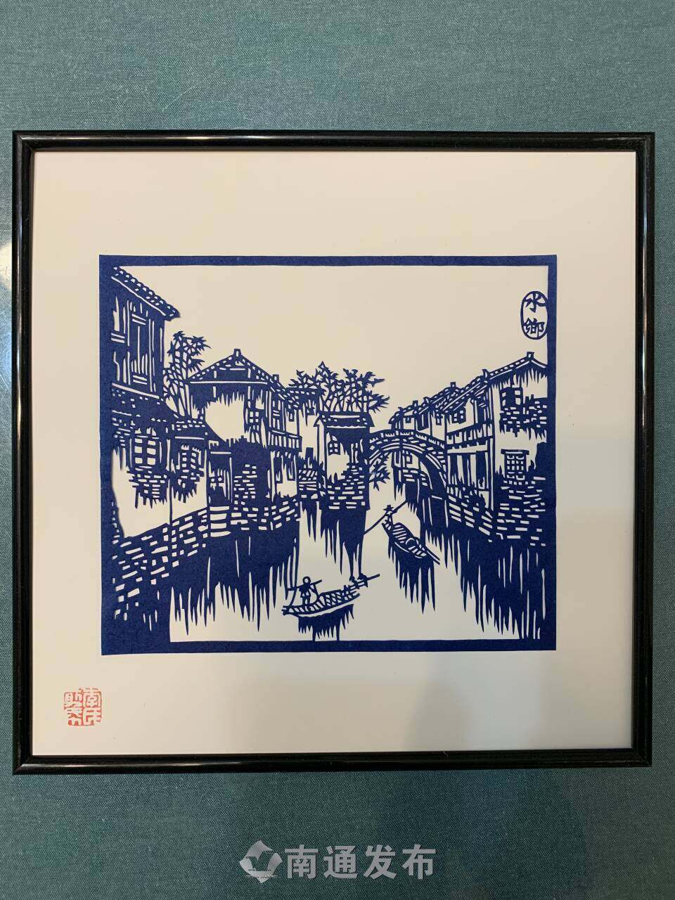 “我与春风皆过客,你携秋水揽星河……”悠扬的乐曲声中,一幅深蓝色的《水乡》剪纸作品,刹那间被抹上绚丽的色彩。22日晚,南通剪纸非遗传承人李海烽在微信朋友圈发布短视频,“这是AI技术与传统剪纸的碰撞。”