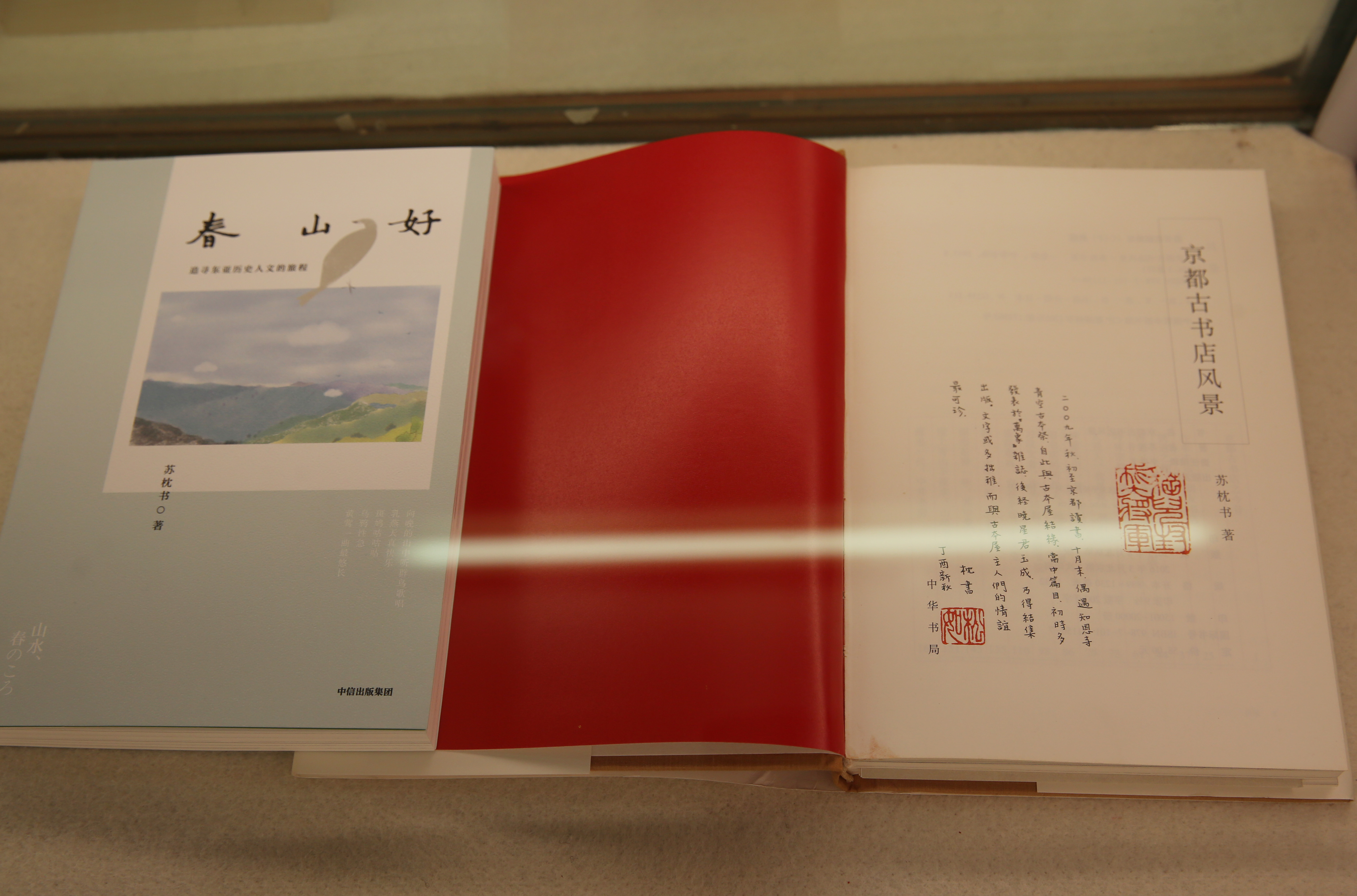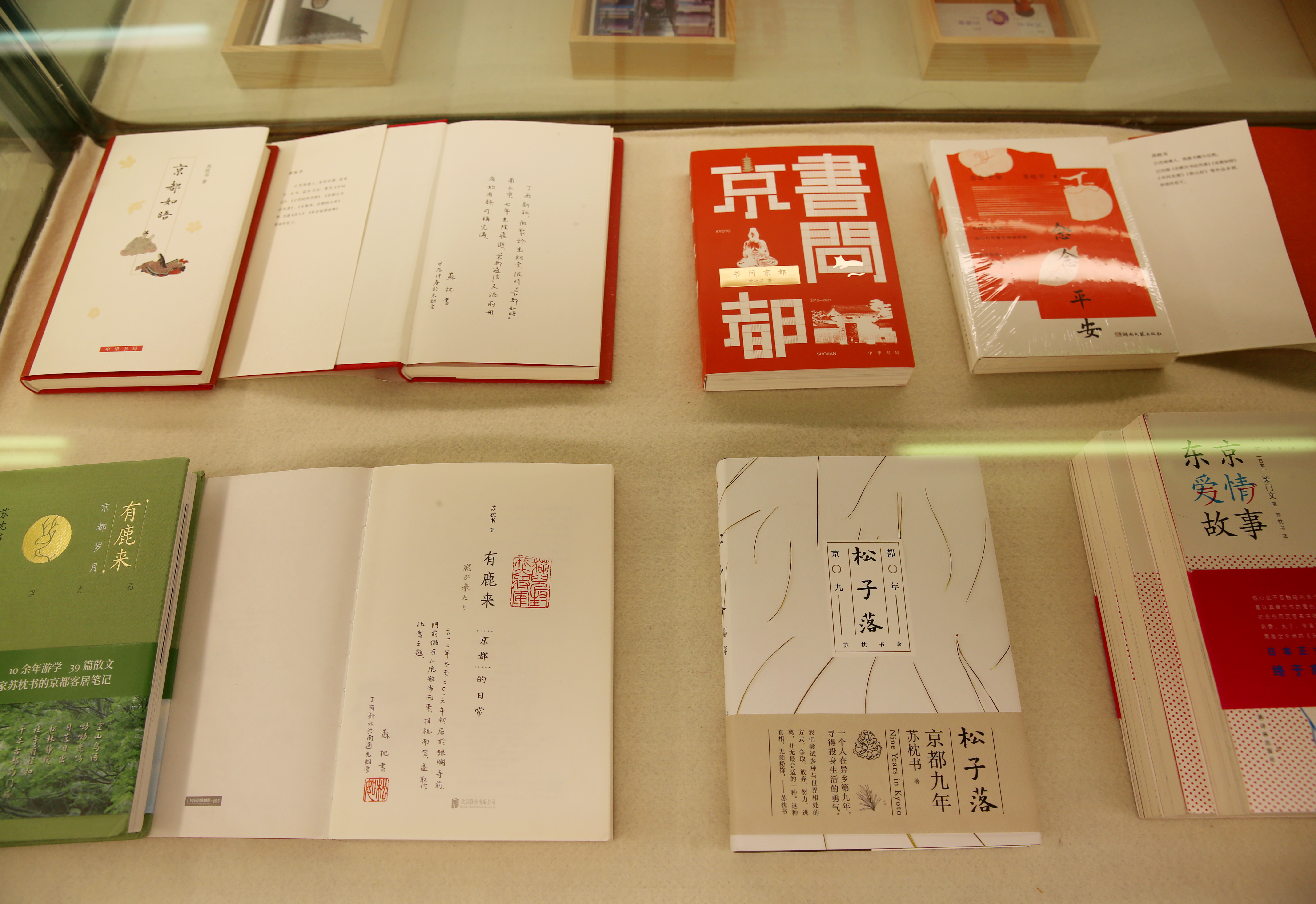 南通光朗堂尤无曲艺术馆一直立足乡邦,弘扬中华优秀传统文化。七年前,南通光朗堂尤无曲艺术馆曾承办苏枕书新书《京都如晤》读者分享会,上个月又和南通市图书馆携手主办苏枕书新著《念念平安》读者分享会。“在世界图书与版权日举办展览,将苏枕书著作和生活影像集中展示,以加深大家对这位南通籍青年作家的了解。”南通光朗堂尤无曲艺术馆馆长尤灿介绍,苏枕书《京都如晤》《书问京都》《念念平安》这三部“跨海飞鸿”的文字,都首发在南通《江海晚报》,历时10余年。尤灿说,虽然这次苏枕书不能亲临展览现场,但她的近30种著作译作,20幅影像图片,以及书扉页上的题跋展示,可以让家乡读者有见字如面的感觉。