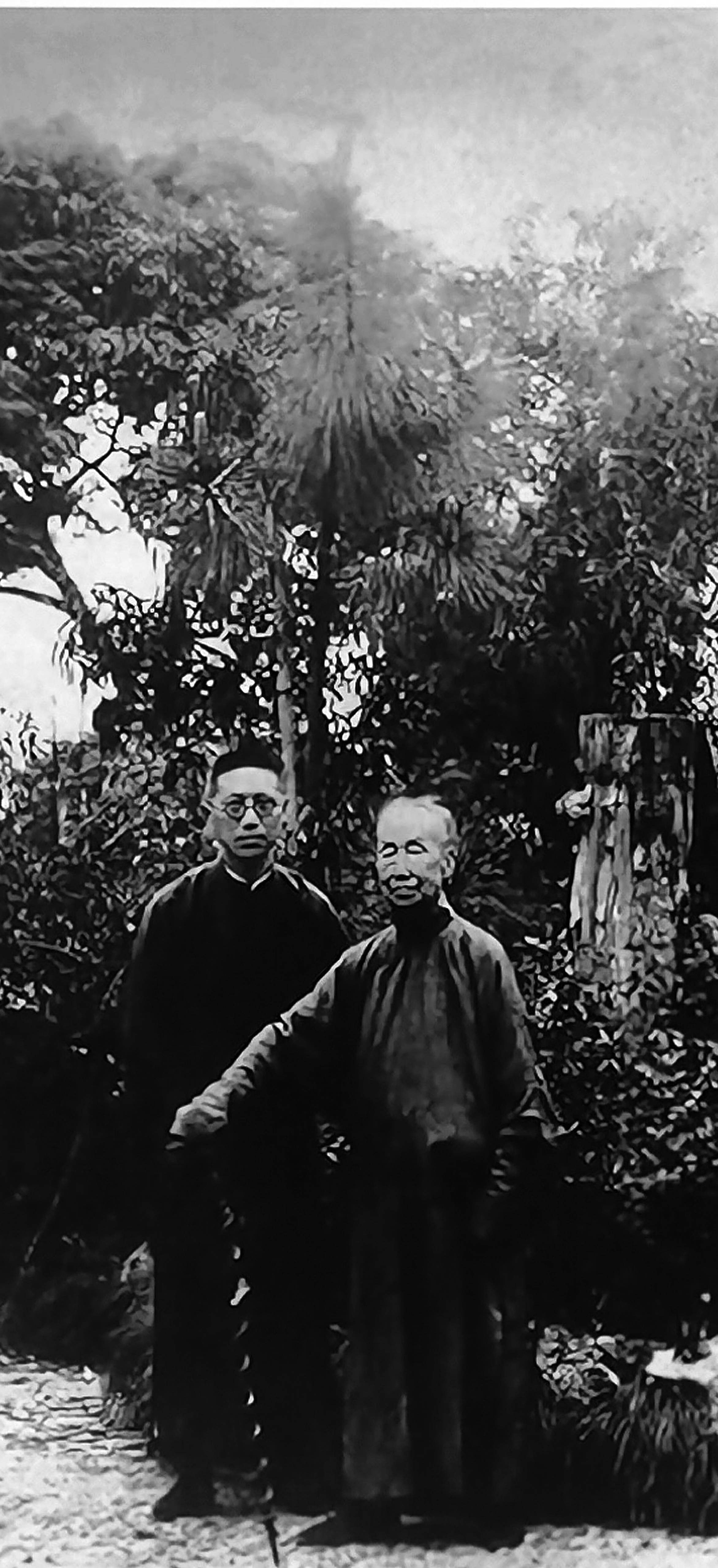 1927年,吴昌硕(右)与王个簃在西泠印社合影