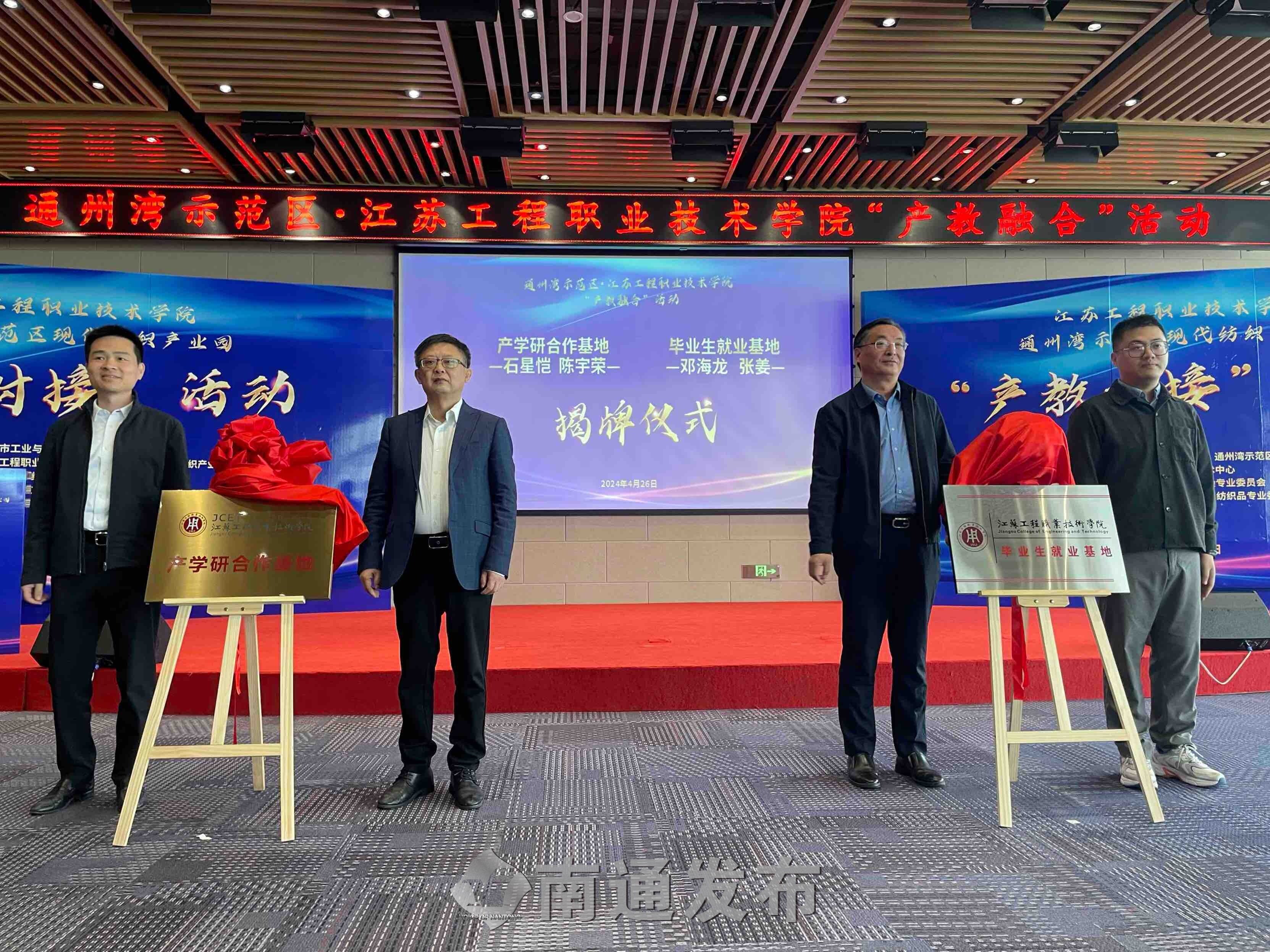 4月26日,随着红布缓缓落下,通州湾示范区与江苏工程职业技术学院合作共建的学生就业基地、产学研合作基地在通州湾现代纺织产业园揭牌成立。这是推进我市纺织产业结构调整、共同探索产教融合新模式、新路径的一次有益尝试。