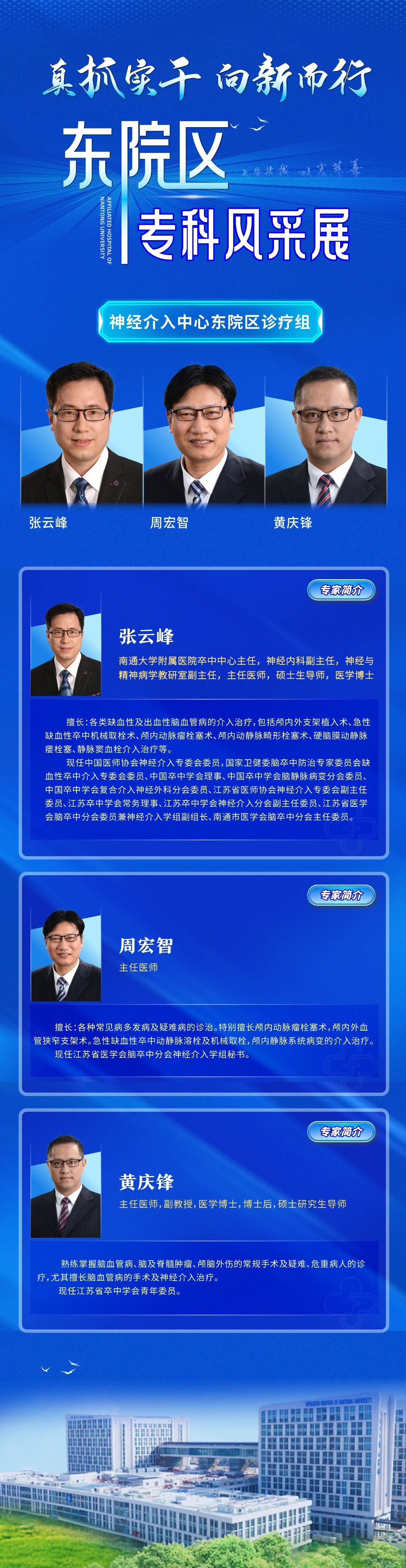作为南通地区唯一授牌的国家级高级卒中中心,为更高质量地服务广大脑血管病患者,通大附院在省内大型三甲医院中,率先实现多学科融合、实体化成立了神经介入中心病区。国家级高级卒中中心需整合神经内、外科、急诊医学科、影像科、康复科等多学科,在脑卒中救治中形成以卒中患者为中心,快速有效的急诊绿色通道和规范化诊疗流程。神经介入中心和神经内、外科都属于卒中中心脑卒中救治环节中的重要部门。自成立以来,通大附院神经介入团队一直以患者为中心,绿色通道畅通无阻、神经介入设备先进、技术力量强、手术体量大,以高质量诊疗服务造福江海百姓,担负起本地区挽救脑血管病患者生命的最后一道防线。