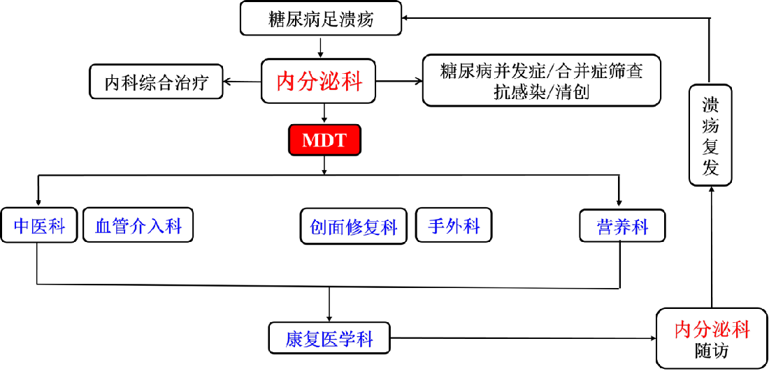 糖尿病足是糖尿病最严重的慢性并发症之一,是导致糖尿病患者截肢、甚至死亡的主要原因,极大增加了社会、家庭及个人的疾病负担。我院内分泌科于2010年起重点关注糖尿病足病,2015年开启了以内分泌科为主导的MDT团队模式,2023年3月糖尿病足联合病房正式运行,这样的专病病房,减少了患者多个科室周转的麻烦,简化流程,缩短住院日,降低整体费用。不管糖足患者是哪个科室首诊,在内分泌科医生会诊后,即可转入糖尿病足联合病房进行全面评估及多学科诊治,最大化的方便患者。