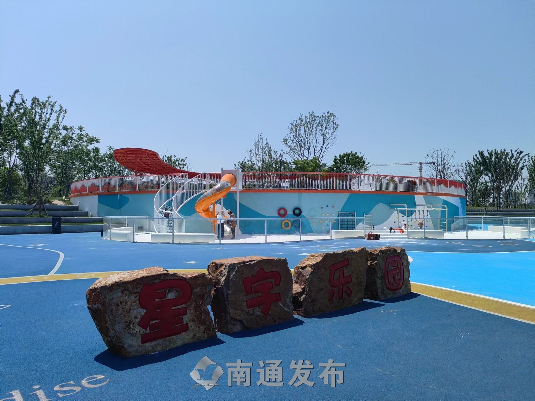 “星宇乐园”是南岸中段特意打造的一个儿童主题的休闲游乐空间。蓝与黄色彩交织的橡胶地面上,融入星星、火箭、星球等元素,童趣满满;同时建设了摇摇马、白沙滩等多种儿童游乐设施。