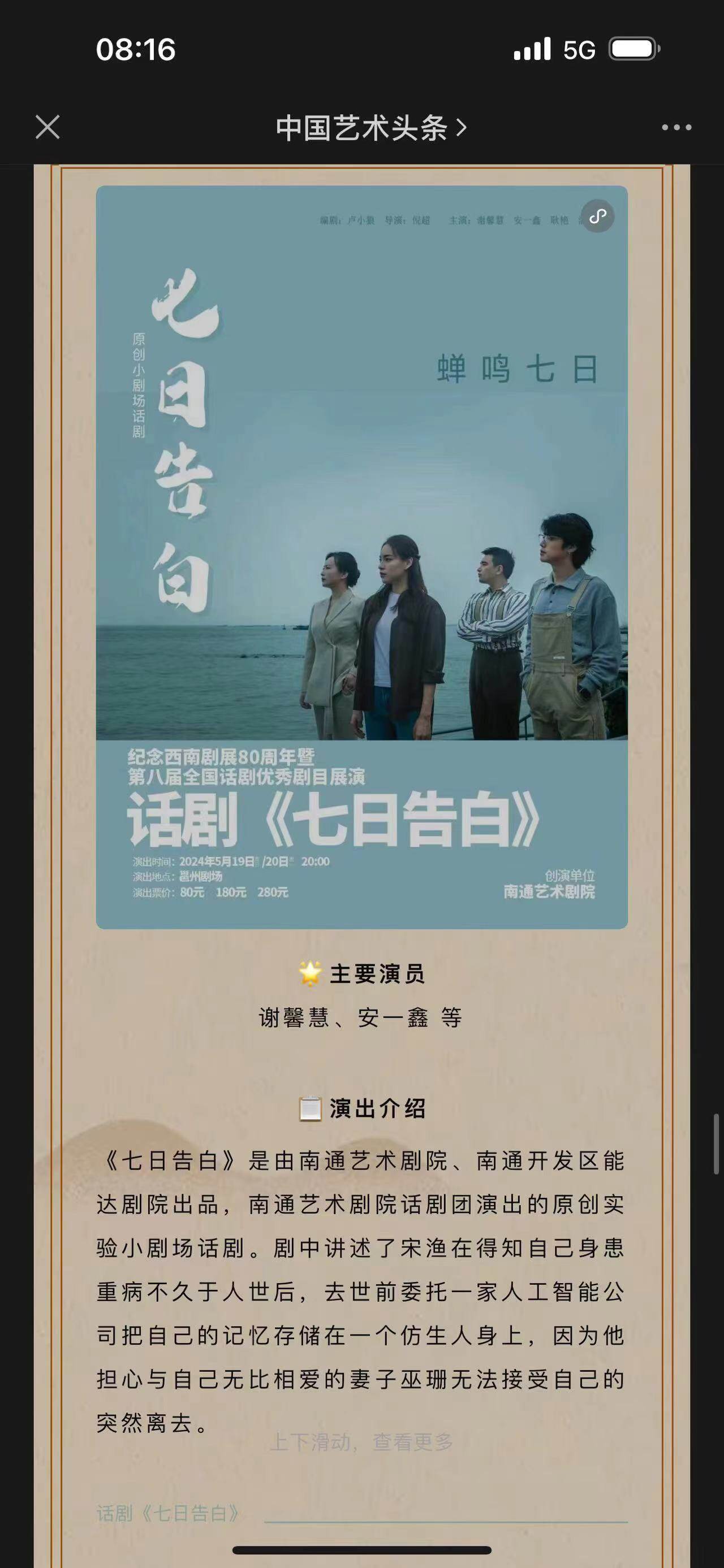 这段时间,纪念西南剧展80周年暨第八届全国话剧优秀剧目展演正在进行,从南通远道而来的剧目《七日告白》即将在广西南宁邕州剧场上演。该剧是由南通艺术剧院、南通开发区能达剧院出品的原创实验小剧场话剧,去年9月起在能达剧院连演数场,观众“解渴”的同时载誉满满,当年就获得“粤港澳大湾区(深圳)青年戏剧节话剧类‘最佳剧目’。”