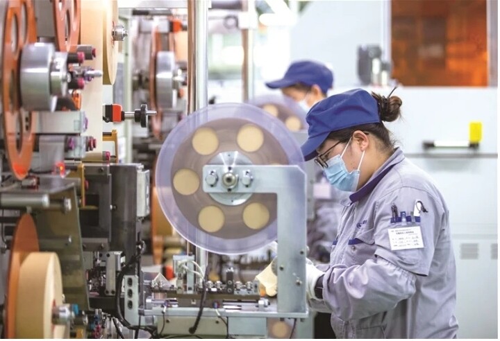 南通江海电容器股份有限公司车间内,工人正在自动化生产线上赶制电容器产品。资料图丨通讯员 翟慧勇 陈青青