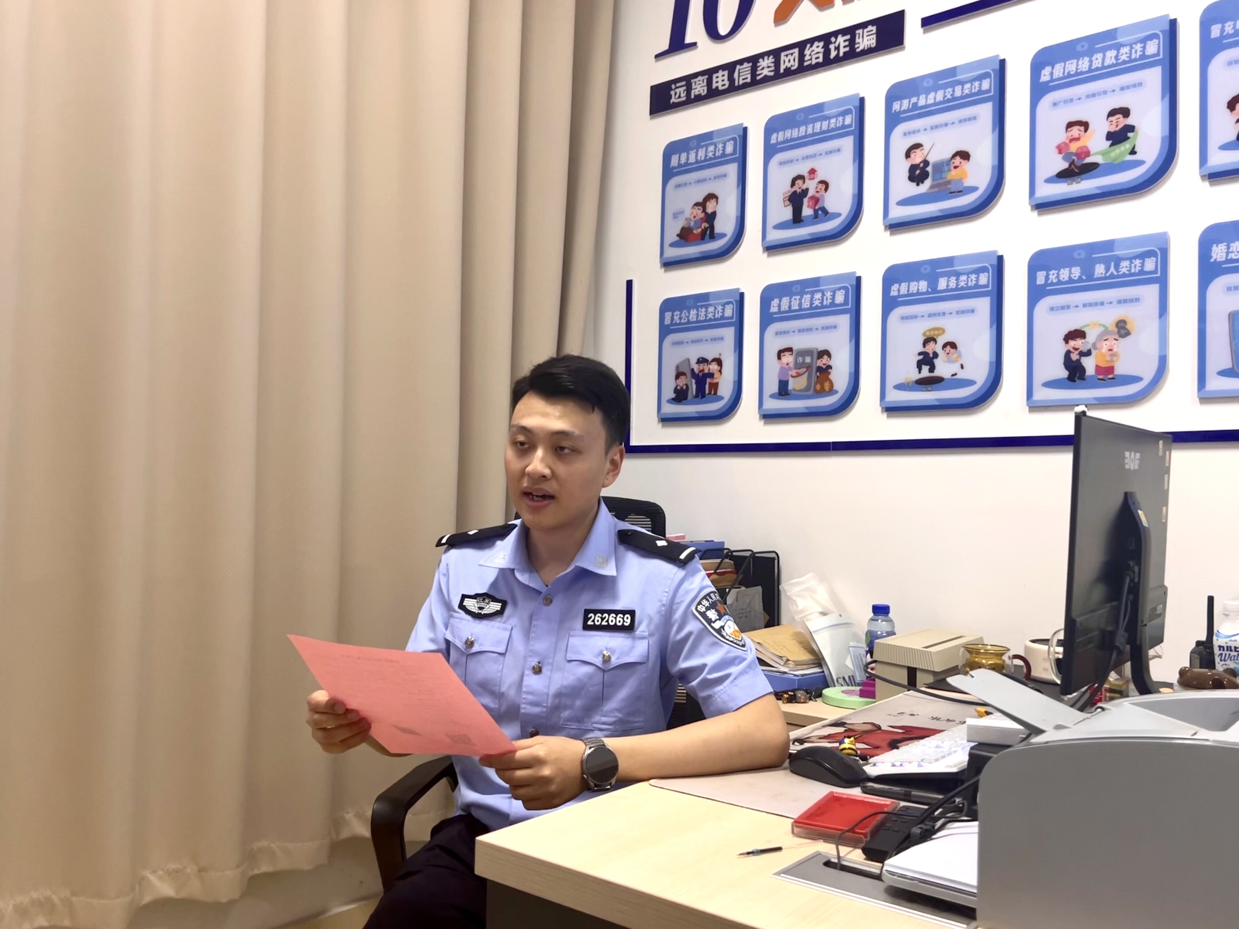 “00后”民警陶天宇日常开展反诈宣防。
