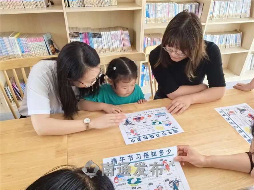 “小朋友们知道端午节有哪些习俗吗?”“你们知道端午节是每年农历的几月初几吗?端午节的来历有哪些……”6月8日,在海门区常乐镇如意村的农家书屋,一场“浓情端午·粽叶飘香”的全民阅读活动吸引了众多村民和孩子参与。志愿者们通过视频、图片和生动的故事,带领大家追溯了端午节的由来,重温了屈原、伍子胥等历史人物的传奇故事。现场,村民们围坐一圈,亲手卷粽叶、包糯米、系棉线,欢声笑语中,大家沉浸式体验到了传统文化的魅力。