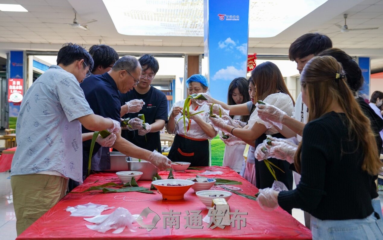 活动期间,该校组织老挝留学生、维吾尔族、藏族、回族、白族等各民族学生代表包制粽子,感受端午节的文化乐趣。活动现场,学校领导、辅导员老师还有食堂的工作人员围在一起,一边关心同学们的学习生活情况,一边和同学们一起将粽叶做漏斗状,填糯米、压紧实、封口、扎捆,做成了鲜绿飘香的粽子。