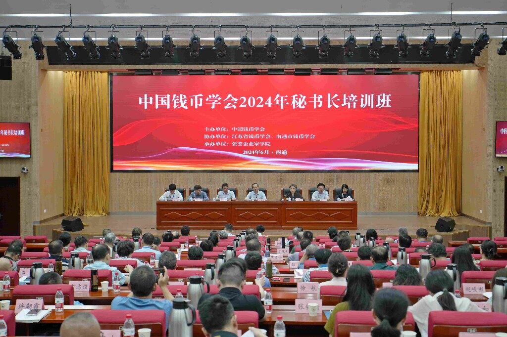 6月12日上午,中国钱币学会2024年秘书长培训班在张謇企业家学院正式开班。来自全国各地钱币学会的秘书长,以及各专委会、各地人民银行相关负责同志齐聚通城,通过开展为期3天的交流学习,进一步加强学会队伍建设,提升专业素养,推动钱币文化事业发展。