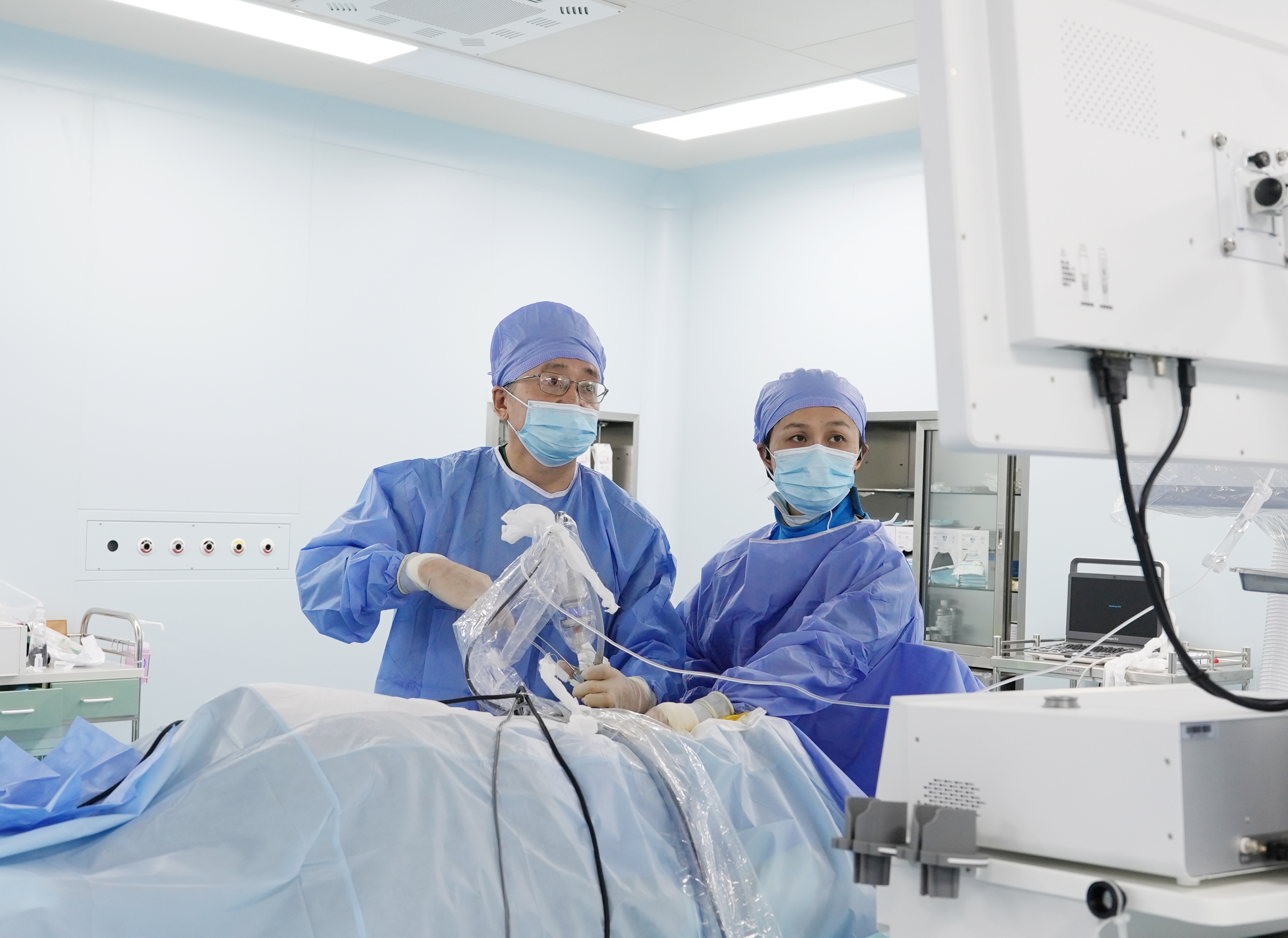 “腰椎管狭窄是导致腰腿痛的常见病之一,可以通过UBE(单侧双通道脊柱内镜)微创手术解除病痛。该手术通过两个不到1公分的小切口通道置入内镜精准操作,完成椎管狭窄减压,去除神经压迫。”疼痛科副主任医师李忠铭介绍道。相比于传统手术,UBE微创手术出血少、创伤小,患者恢复更快。术后第2天,黄先生即可下床简单走动。
