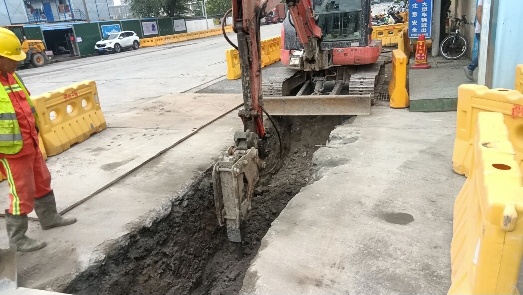 6月27日,在市区世纪大道与长江路西,市政工人们正在利用镐头机破碎路面开挖管道。目前,市区共有雨水管网1180余公里,自2021年完成首轮高质量养护后,现已进入常态化养护阶段。记者了解到,现阶段的管网清淤、冲洗、检测以六年为一轮,今年计划完成约300公里。检测发现结构性、功能性缺陷后,将根据情况采取开挖或非开挖修复,全面提升管网运行能力。