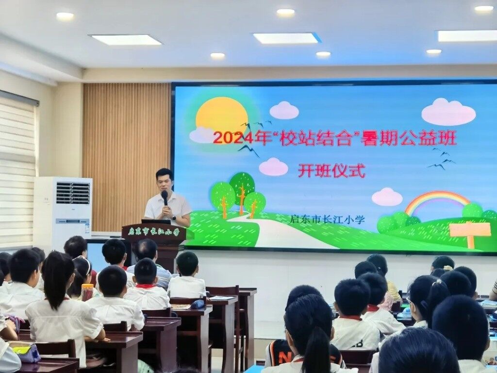 为丰富学生暑期生活,帮助孩子们度过一个文明、愉快、充实的暑假,7月1日,由启东市教育体育局、启东市关心下一代工作委员会联合主办的2024年“校站结合”暑期公益班在各校开班。