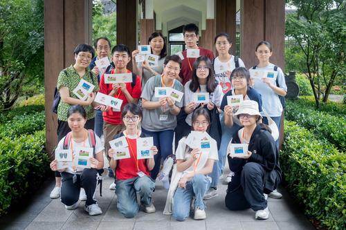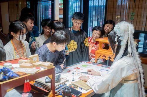 而在富美帽饰博物馆内,学生们认真投入地聆听讲解员讲述帽子风格的变迁及其背后的时代印记,对南通城市的认知也在悄然升华。谈及此行感受,福建中学初三的卢巧晴笑言“没玩够”,她坦言自己钟爱博物馆,而南通之行让她惊喜地发现,这座城市不仅文化底蕴深厚,更有着难以言喻的城市魅力。她满怀期待地说:“希望有一天能再次来到南通,深度游览这些博物馆,感受更多的文化韵味。”扎紧、上色、晕染……在随后的帽子扎染体验课上,学生们更是创意无限,从扎紧布料的细致动作到色彩晕染的大胆尝试,每一个环节都充满了探索的乐趣。