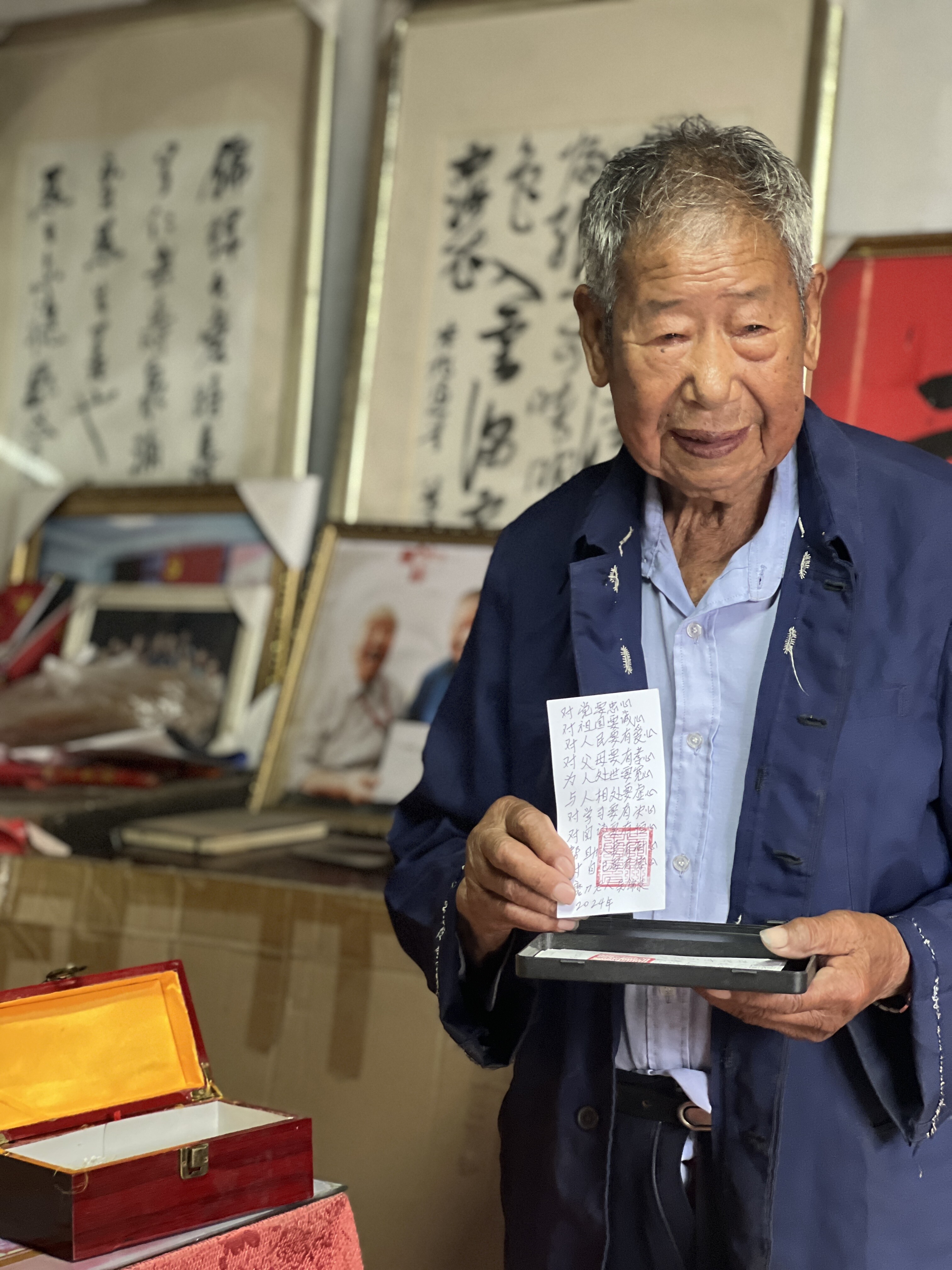 “以前不识字,扫盲队来了后,我下决心要学习。”吴锦泉识字始于新中国成立后的全国扫盲运动。他觉得,认字最快的方法就是读报、抄报,不知不觉间,这个习惯坚持了70多年。从去年起,老人又开始练习写毛笔字。“不管年纪多大,我们要‘活到老,学到老’。”
