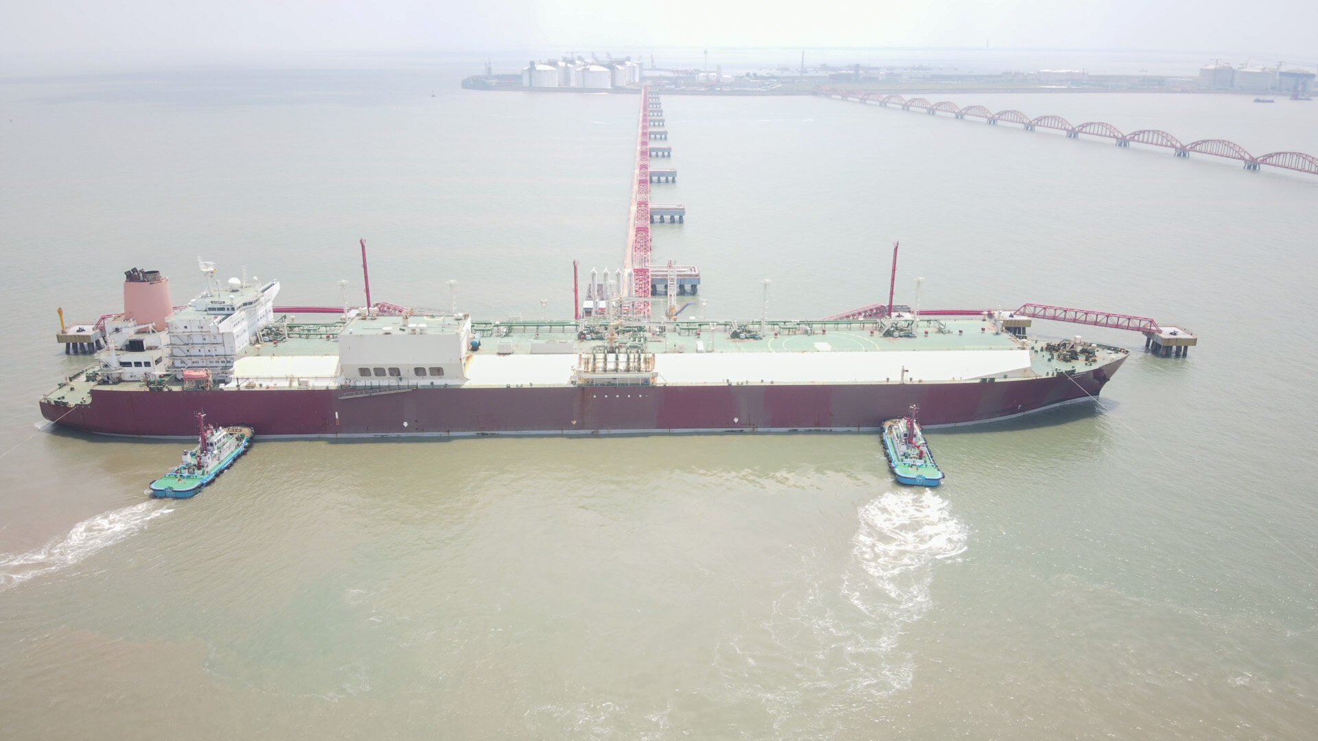 该轮船长345.3米、宽53.8米,投影面积相当于2.6个足球场,此次载运11.5万吨、26.19万方液化天然气,可满足3亿户家庭一天的用气量。江苏LNG接收站是当前长三角地区规模最大、保障能力最强的清洁能源枢纽基地,现有6座LNG储罐,总罐容108万方。自2011年5月24日正式投运至今,已累计接卸LNG总量超5800万吨,外输天然气超800亿方。