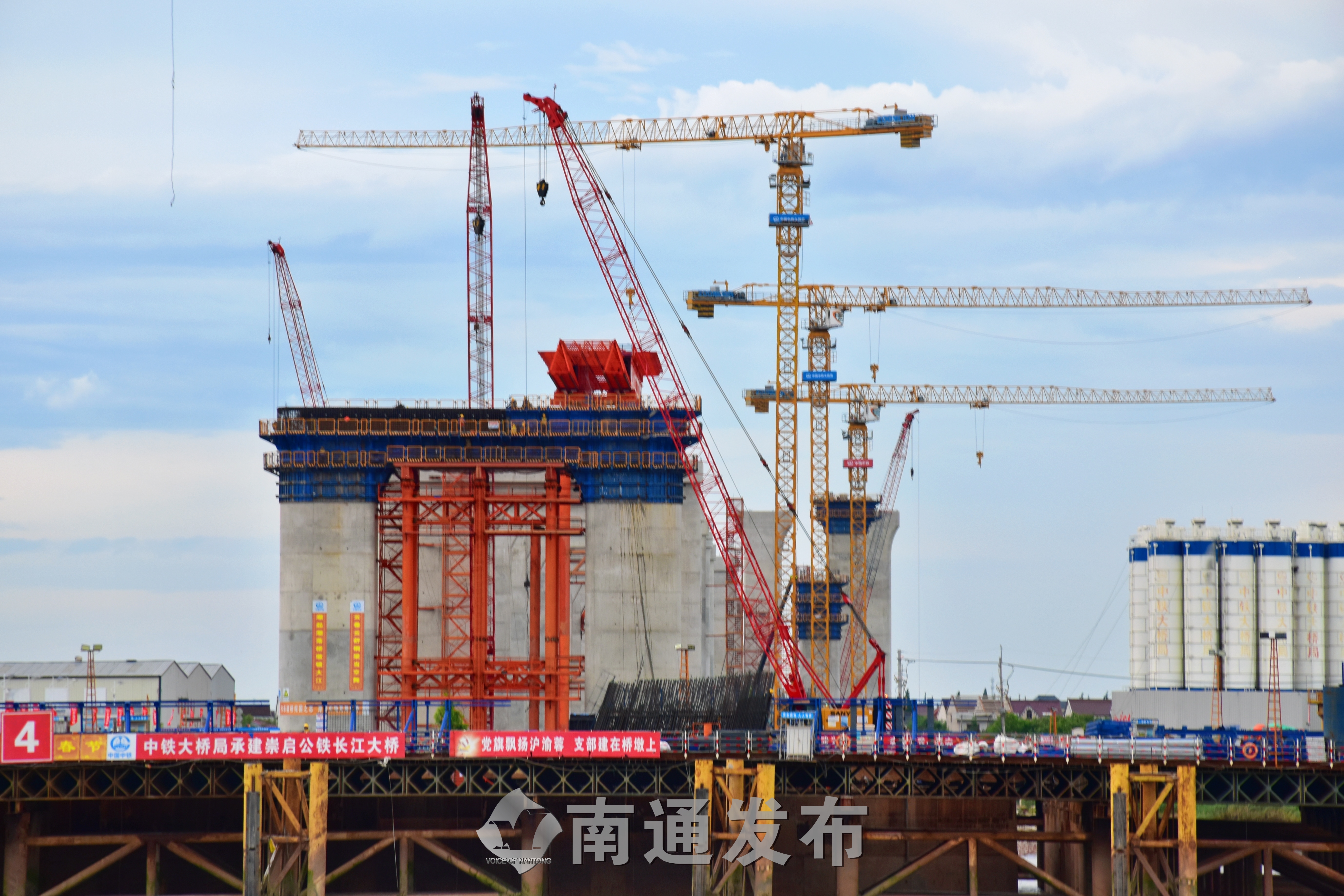 在夏日高温和防汛的双重考验下,南通过江通道建设捷报频传。7月初,由中铁大桥局承建的崇启公铁长江大桥转入梁体施工,非通航孔桥承台已稳固水中7座;张靖皋长江大桥“拔节生长”,辅塔和主塔塔高已分别突破88.6米和58.7米;海太长江隧道江北段主体结构施工更是如火如荼……10日,记者从市交通运输局了解到,张靖皋长江大桥、海太过江通道、通沪通道3座过江通道建设稳步前行,苏通第二过江通道即将开工,崇海通道正深化前期研究,一系列通道建设正有力支撑和推动更高质量一体化发展。
