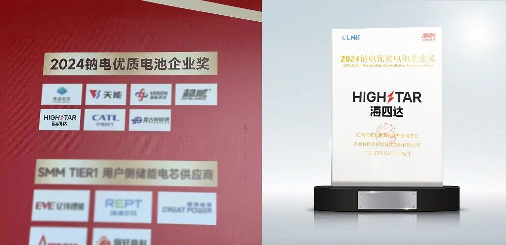 2024年5月29日,由上海有色网主办的CLNB·2024(第九届)中国国际新能源产业博览会在苏州盛大开幕。同期举办的中国新能源产业3060奖颁奖晚宴上,海四达从众多参评企业中脱颖而出,获评“中国最佳钠电优质企业”。