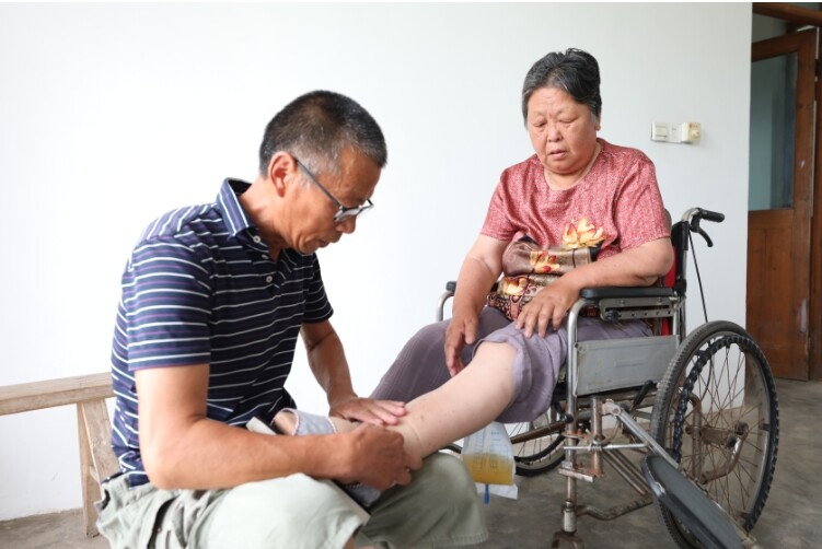 年轻时,黄辉是一名电焊工,妻子在家操持农活,夫妻俩勤恳能干,一度过着比较富足幸福的生活。然而,不幸突如其来。2010年的一天早上,黄辉的妻子和往常一样在田间锄地。突然,她感觉腰部“嗖”地酸痛,瞬间倒地无法站立。黄辉把妻子送到医院,医生判定脊椎神经不可修复性损伤。黄辉带着妻子辗转南通、上海、海门等多地求医,然而最终妻子还是瘫痪在床,胸部以下完全丧失知觉,再也没能站起来。