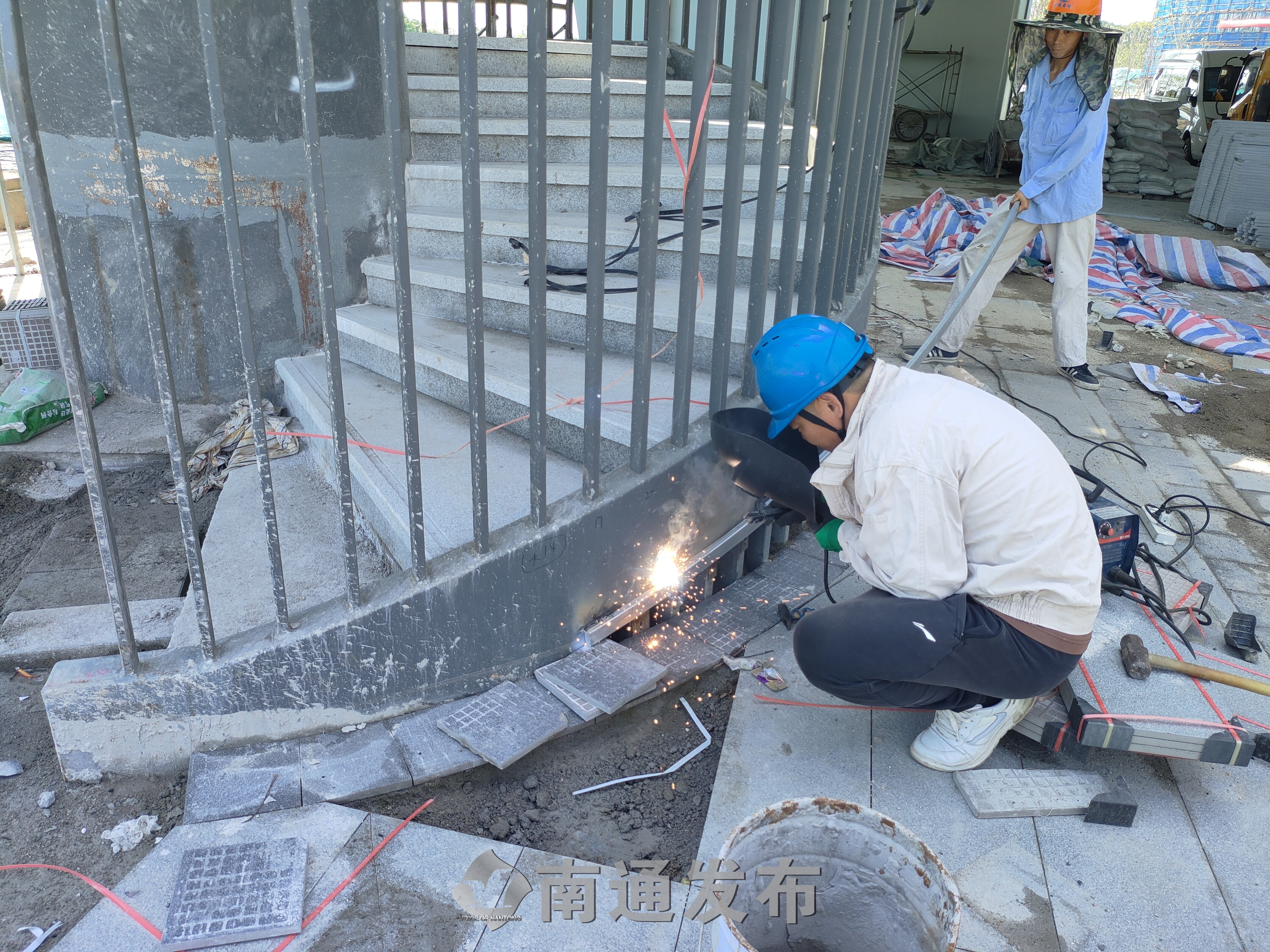 永昌路大桥旋转楼梯处,焊花飞溅;城闸路沿河边,吊机来回挥舞“臂膀”……7月22日上午9时许,通城气温已达32℃。主城崇川的五龙汇生态改造项目工地上,60余名施工工人正头顶烈日、脚踏热浪,分别在各自岗位上忙碌着。他们要赶在9月底10月初之前,完成项目的所有施工,确保项目准时对外开放。