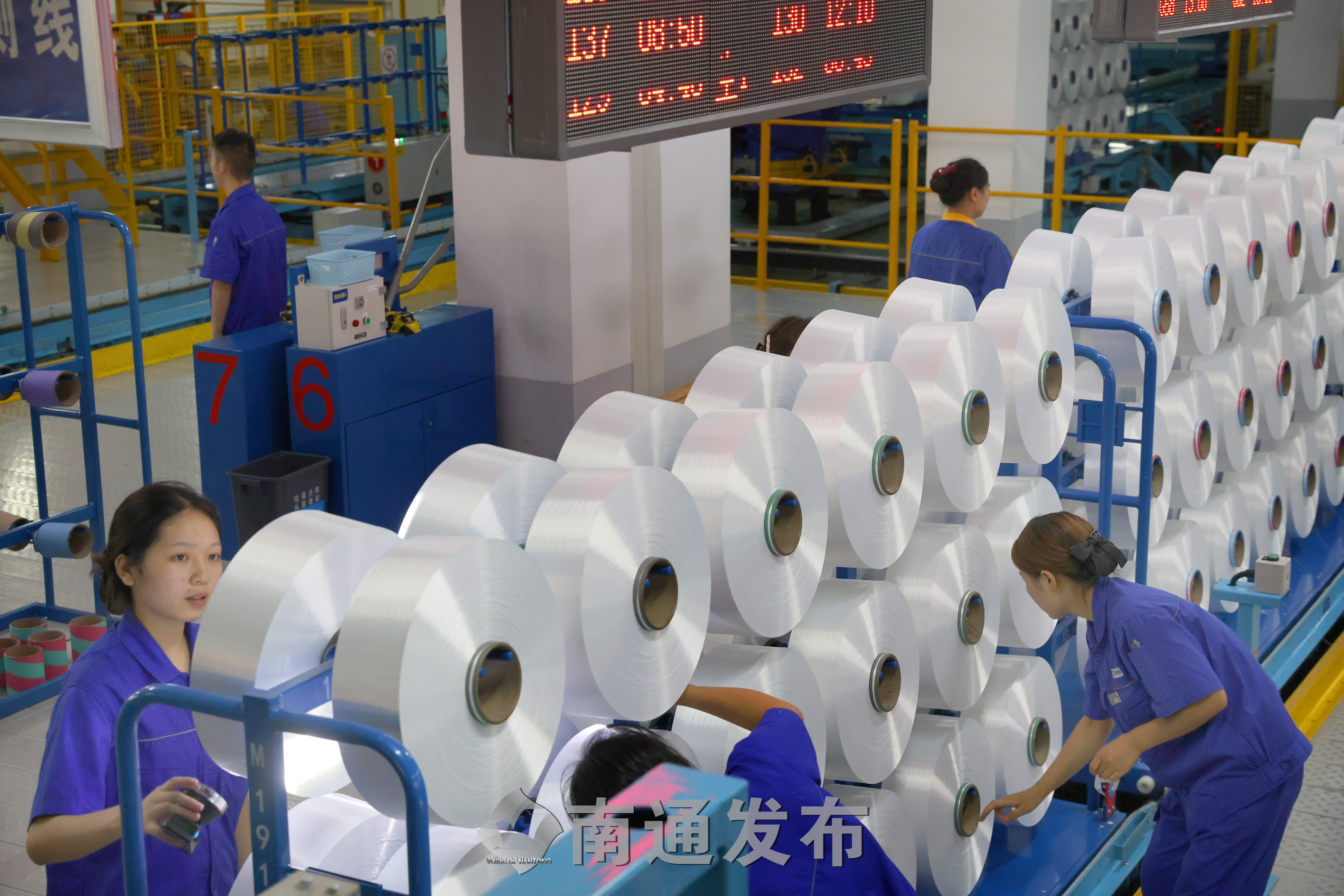 2024年7月18日,江苏省南通市通州区恒力(南通)产业园江苏恒科新材料有限公司加弹质检车间一片忙碌。恒力(南通)产业园装备国内首套全流程数字化智能化纺丝、检验、包装仓储设备,借助互联网、物联网等信息技术,实现了对生产状态、质检数据、包装仓储信息等实时监控和系统化管理,产品物料及相关信息数据在各流程快速流转,整个生产过程节约、高效,为超大产量纺丝车间树立了行业标杆。