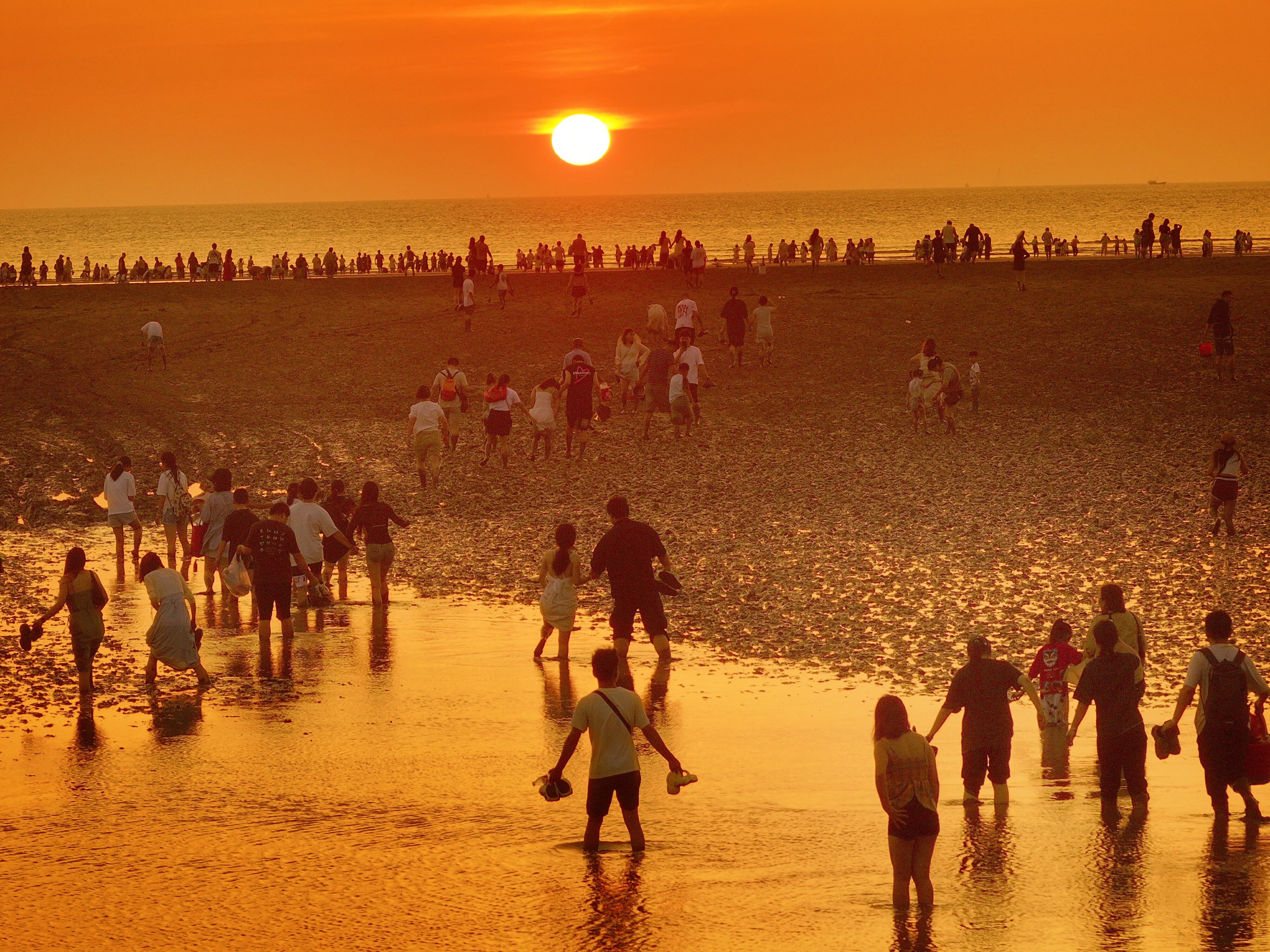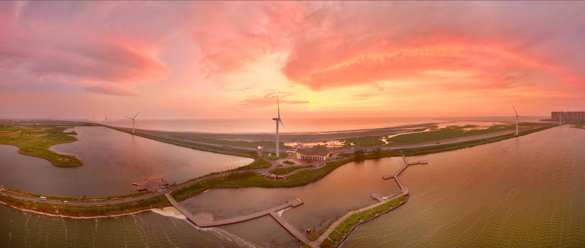 圆陀角黄金海滩位于江苏省最东部,是万里长江的入海口,也是长江、黄海、东海三水交汇之地和江苏最早迎接日出的地方。这里江海交融,湿地广袤,生态环境优美,成为东部沿海一道独特的风景线。