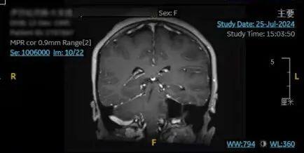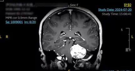 来自新疆伊犁的伊孜两三年前便感觉头部时不时地会疼痛,当时的她并未引起重视。大学毕业后,伊孜来到了江苏淮安工作,近段时间逐渐发现自己的左耳听力下降、左侧鼻唇沟变浅。身体上的变化让伊孜感到十分恐慌,她连忙前往当地医院,做完头颅MRI检查后发现,导致她出现上述症状的罪魁祸首竟是长在颅内的听神经瘤!并且听神经瘤直径已经超过了4厘米,脑干受压明显。伊孜的父母得知女儿的病情后,立马从新疆伊犁来到江苏,陪同女儿到南通就诊。