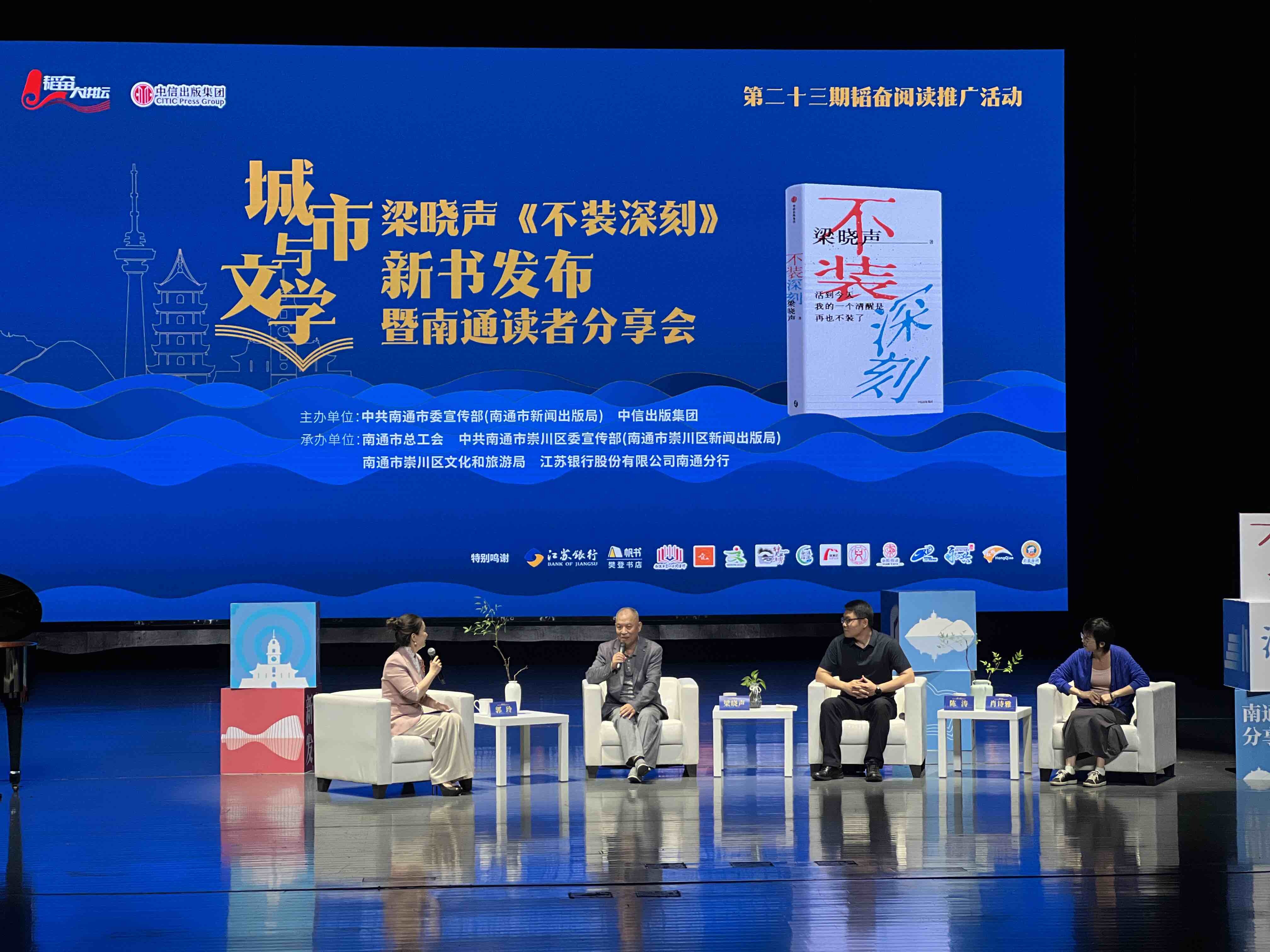 8月24日,中国当代著名作家、学者梁晓声的全新之作《不装深刻》在南通更俗剧院举行了以“文学与城市”为主题的新书发布和读者分享会,《人民文学》杂志社副主编陈涛、中信出版集团文学事业部乘风编室主编肖诗雅参与对谈。