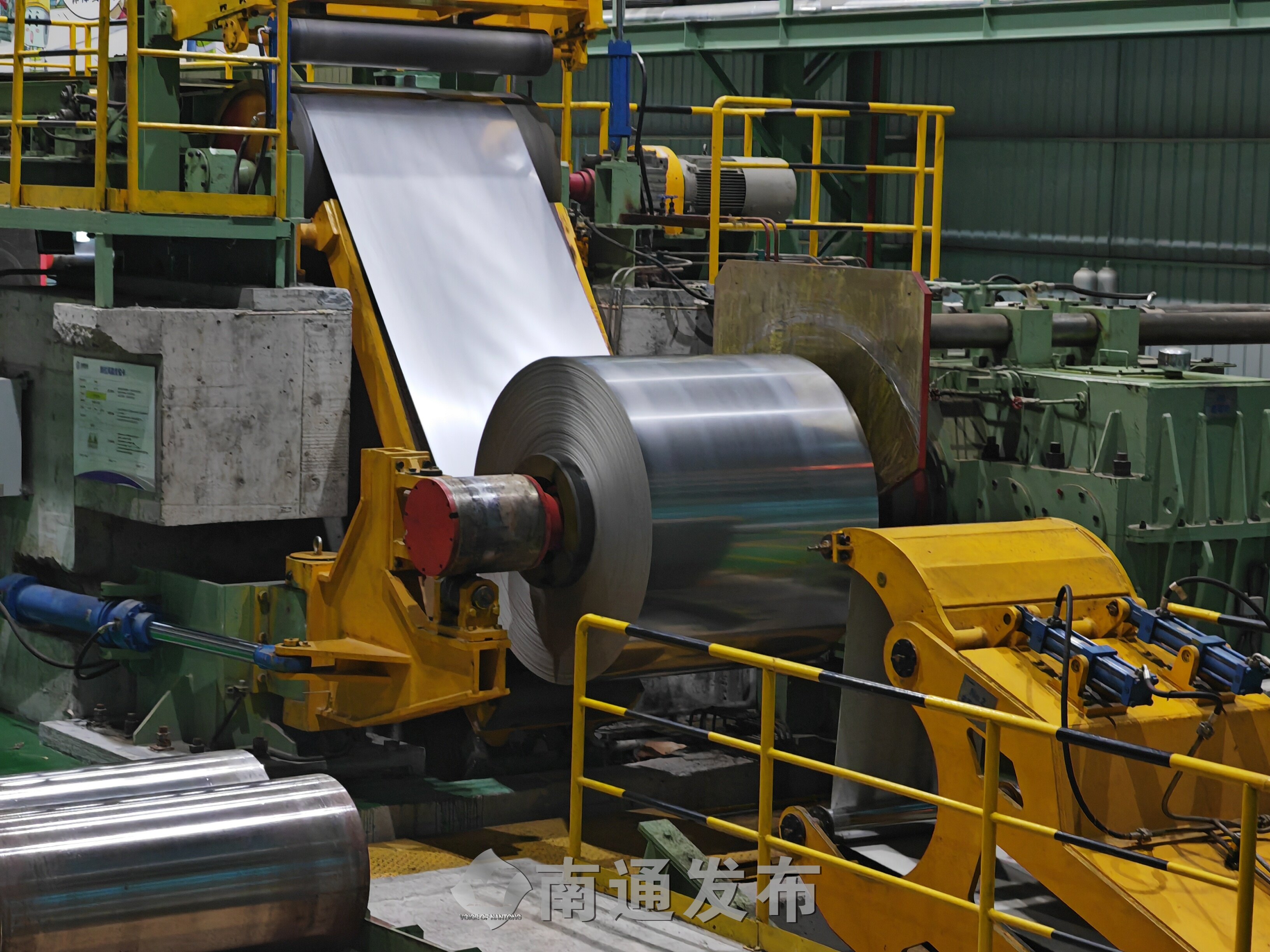“这条生产线长600多米,钢板带经过轧制、脱脂、退火、电解、酸洗、平整、拉矫等工序,变成0.3毫米厚的精密不锈钢,每分钟能产出1吨多。”昨天,在北材南通金属科技有限公司生产车间内,公司生产经理林浩然边走边介绍。