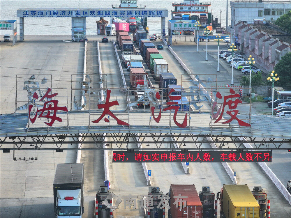 据了解,海太汽渡是长江干线江苏段离上海最近的汽车渡口,被誉为“长江干线第一渡”。汽渡主要经营海门至太仓、上海、苏南等地的车辆、行人渡运业务,拥有4条全回转渡轮,6个泊位,日最大通行能力为8000辆(双向)。海太汽渡在跨江通行、运输方面都有着不可替代的作用。