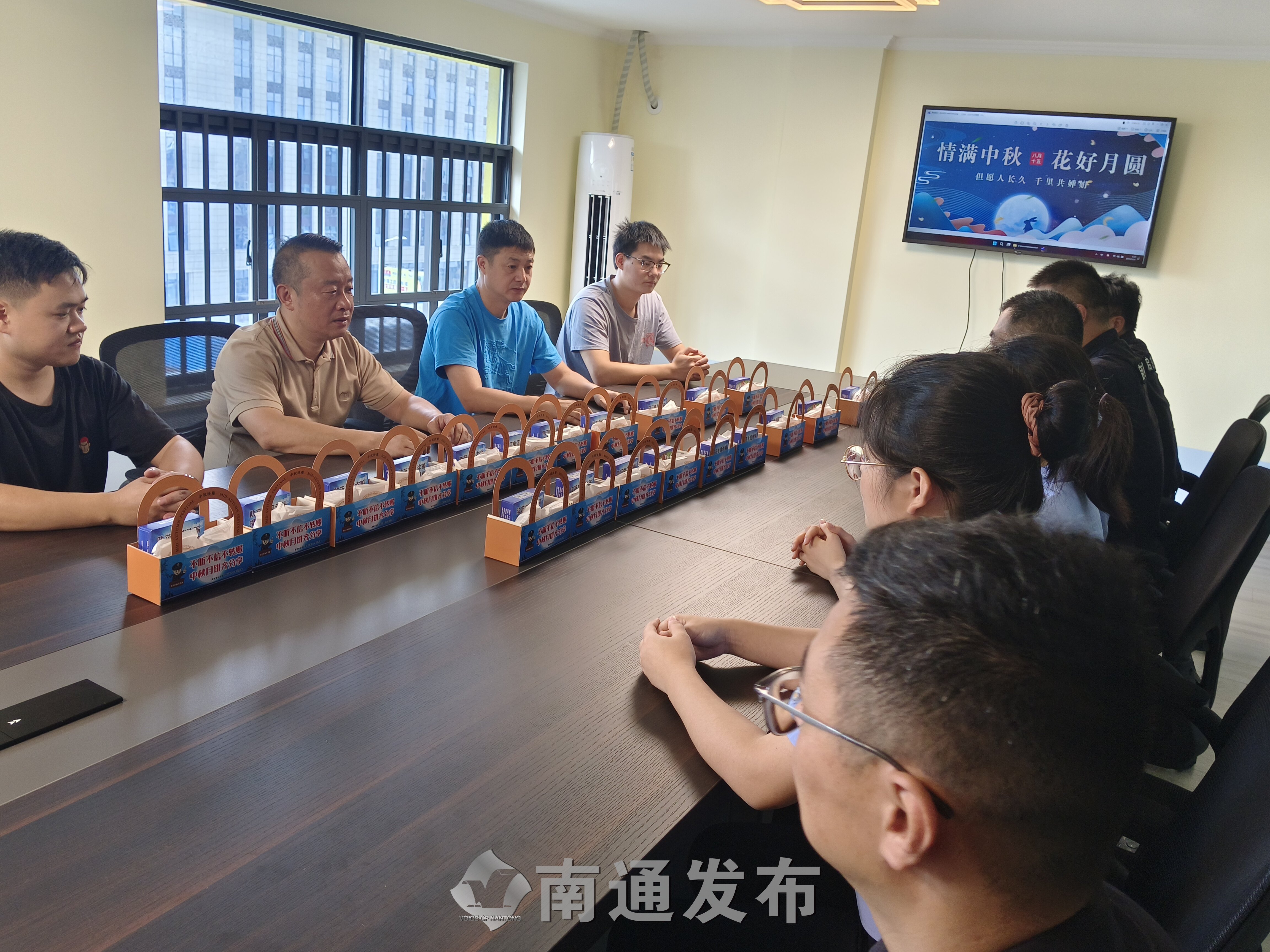 中秋佳节将至,14日上午,启东市公安局吕四港镇中心派出所民警、辅警妈妈团深入辖区江苏品能电动工具有限公司开展送平安、递温暖、庆佳节活动。