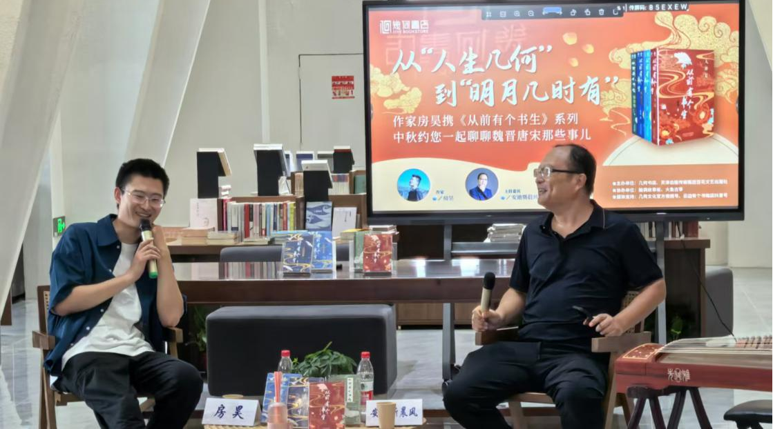 当天分享活动中,房昊以风趣幽默又不失深度的语言,带领现场观众穿越千年时光,从“人生几何”的哲学思考,到“明月几时有”的浪漫情怀,畅谈魏晋风骨、唐宋诗韵。安迪斯晨风以其幽默风趣又不失深度的点评,为这场分享会增添了许多亮点与笑点,让观众在轻松愉快的氛围中感受到了文学的魅力与力量。