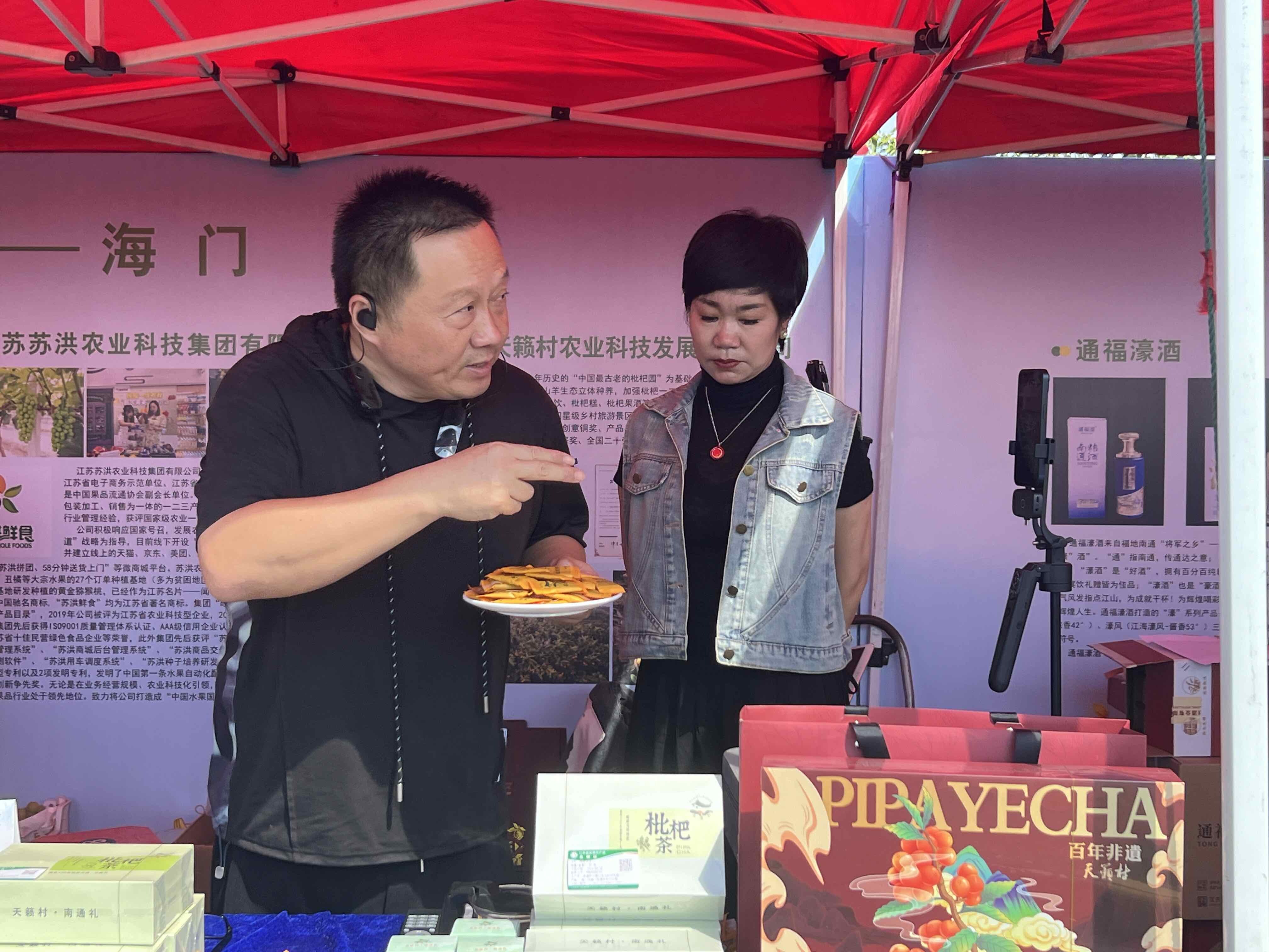 “我们公司已经做了70多年豆腐乳了,今天趁着丰收节的热乎劲儿,特地带了‘玫瑰’‘红方’‘糟方’‘菜包’四种口味,给家乡的市民尝尝鲜。”9月22日上午,刚进入海安大公镇于坝村村口,远远就看见来自各县(市、区)的13个农产品助农直播台在村道上一字排开,台上放满了带着露水、新鲜“上桌”的特色农产品,新中酿造的宣传负责人管昊亮正忙碌地向顾客推荐自家的特色豆腐乳。