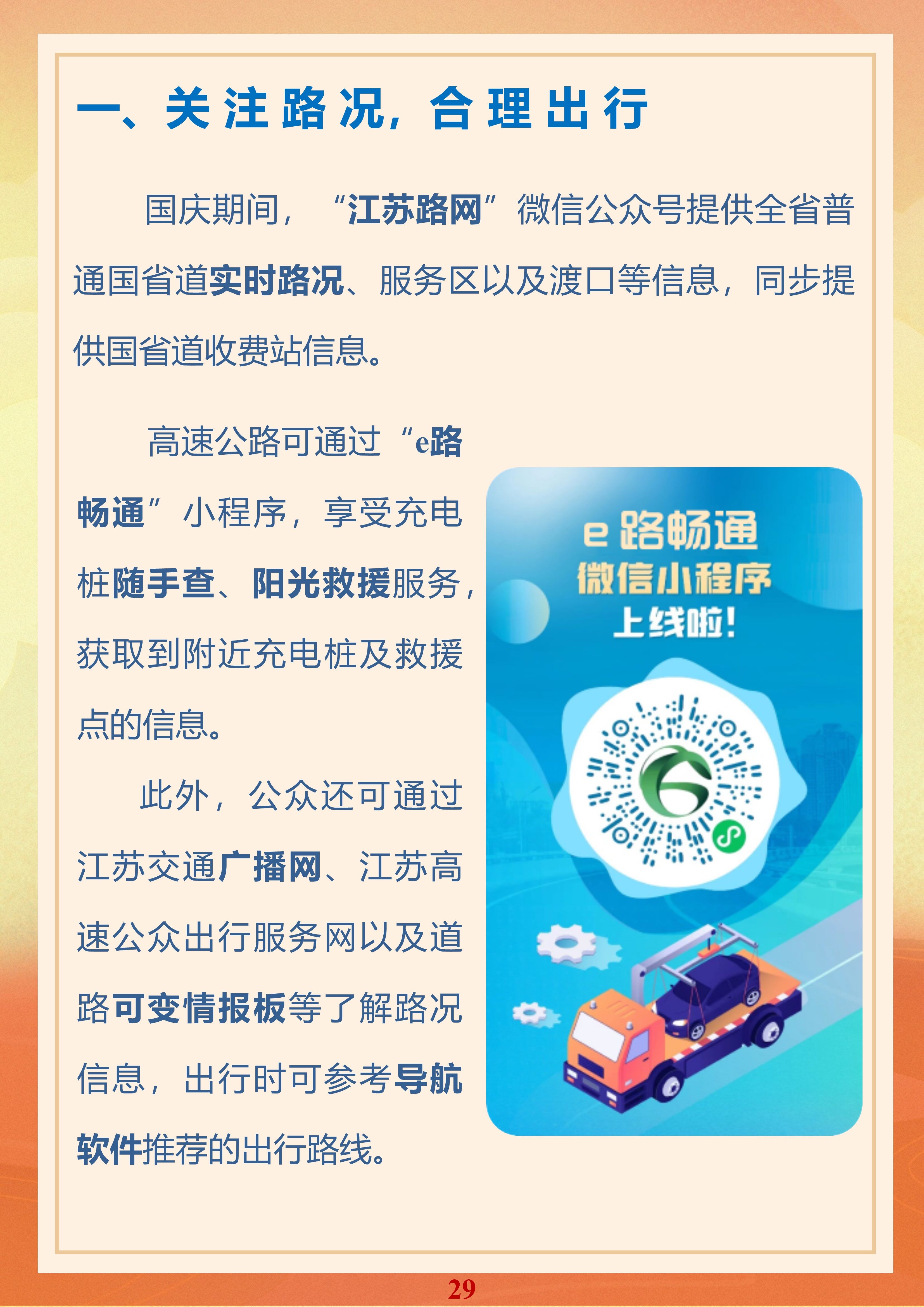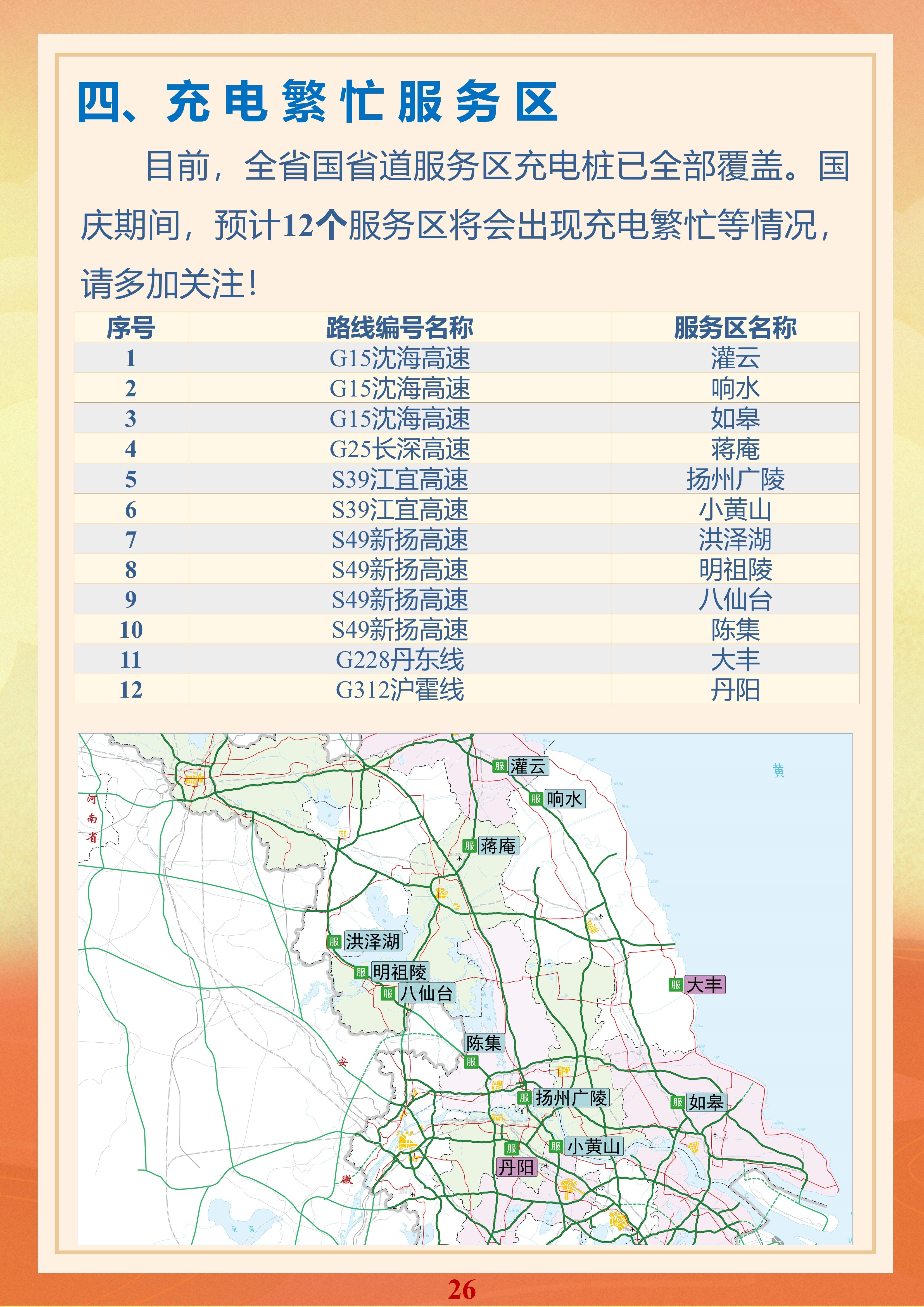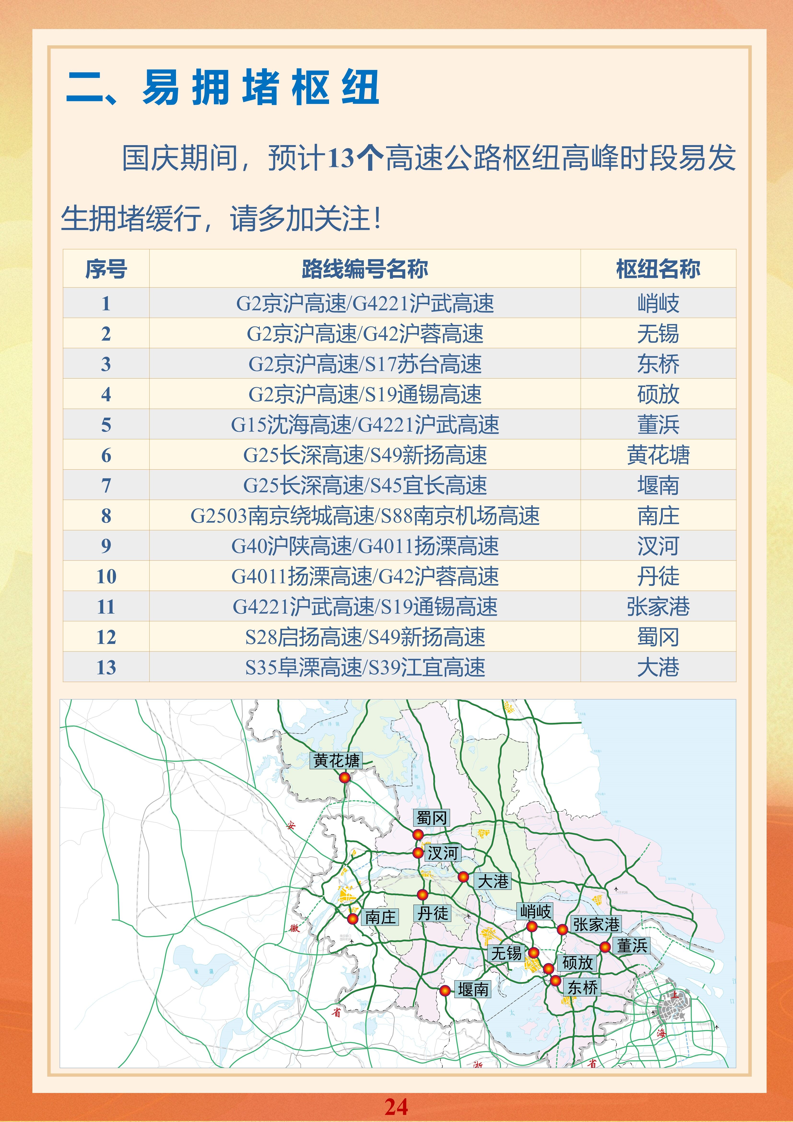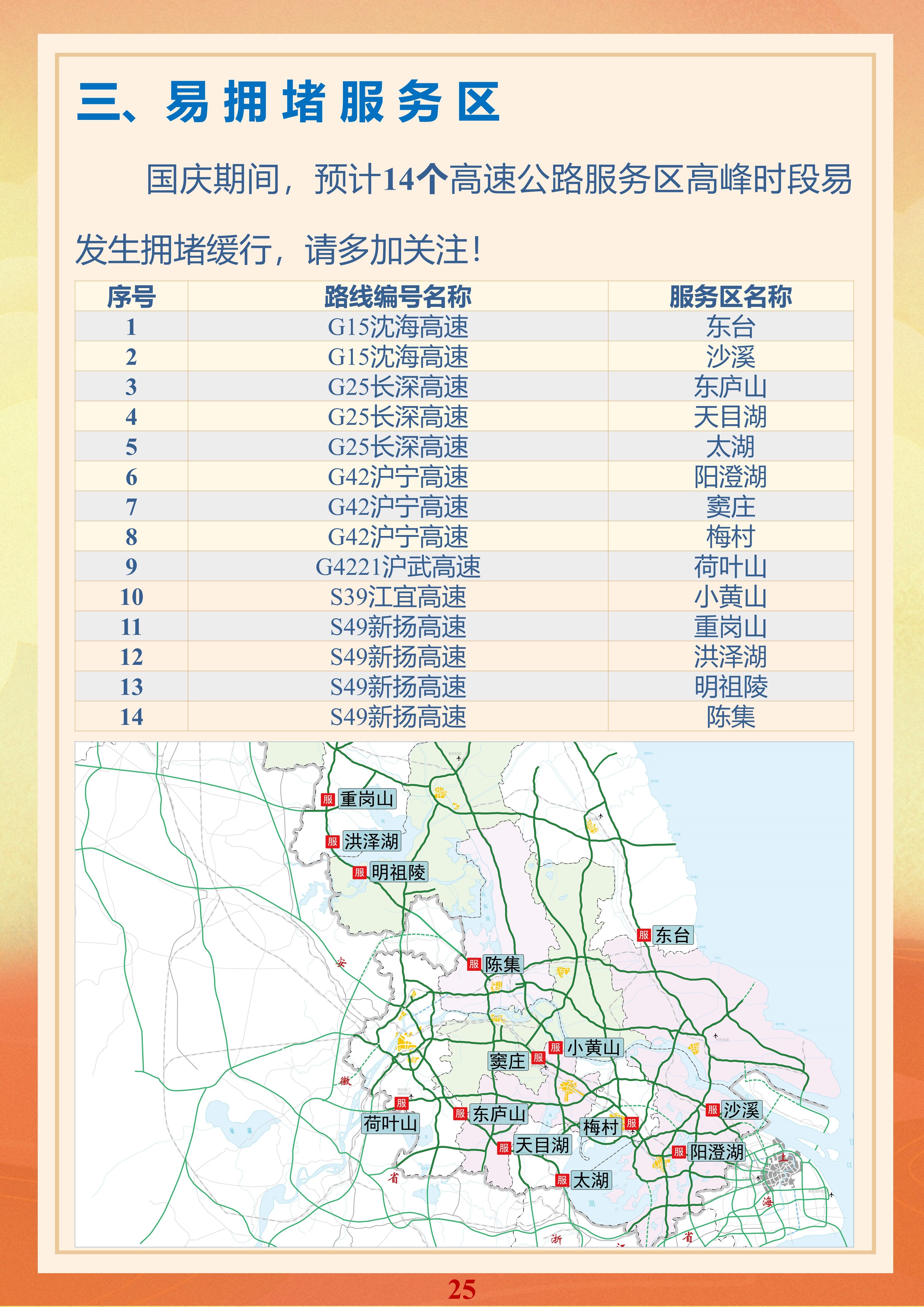 温馨提示:国庆期间,省内有G25长深高速、G40沪陕高速等10个高速公路路段施工,其中苏北地区3个、苏中地区4个、苏南地区3个,请过往车辆驾驶人员谨慎通行或提前绕行。