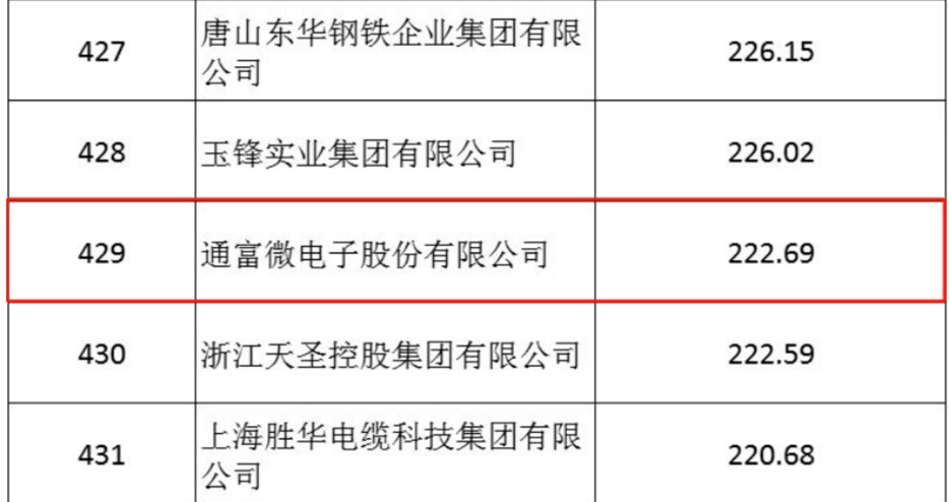 记者今天(27日)从崇川区工信局获悉,在前不久安徽合肥举办的2024世界制造业大会上,中国企业联合会、中国企业家协会发布了2024中国制造业企业500强榜单,崇川区企业通富微电成功上榜。