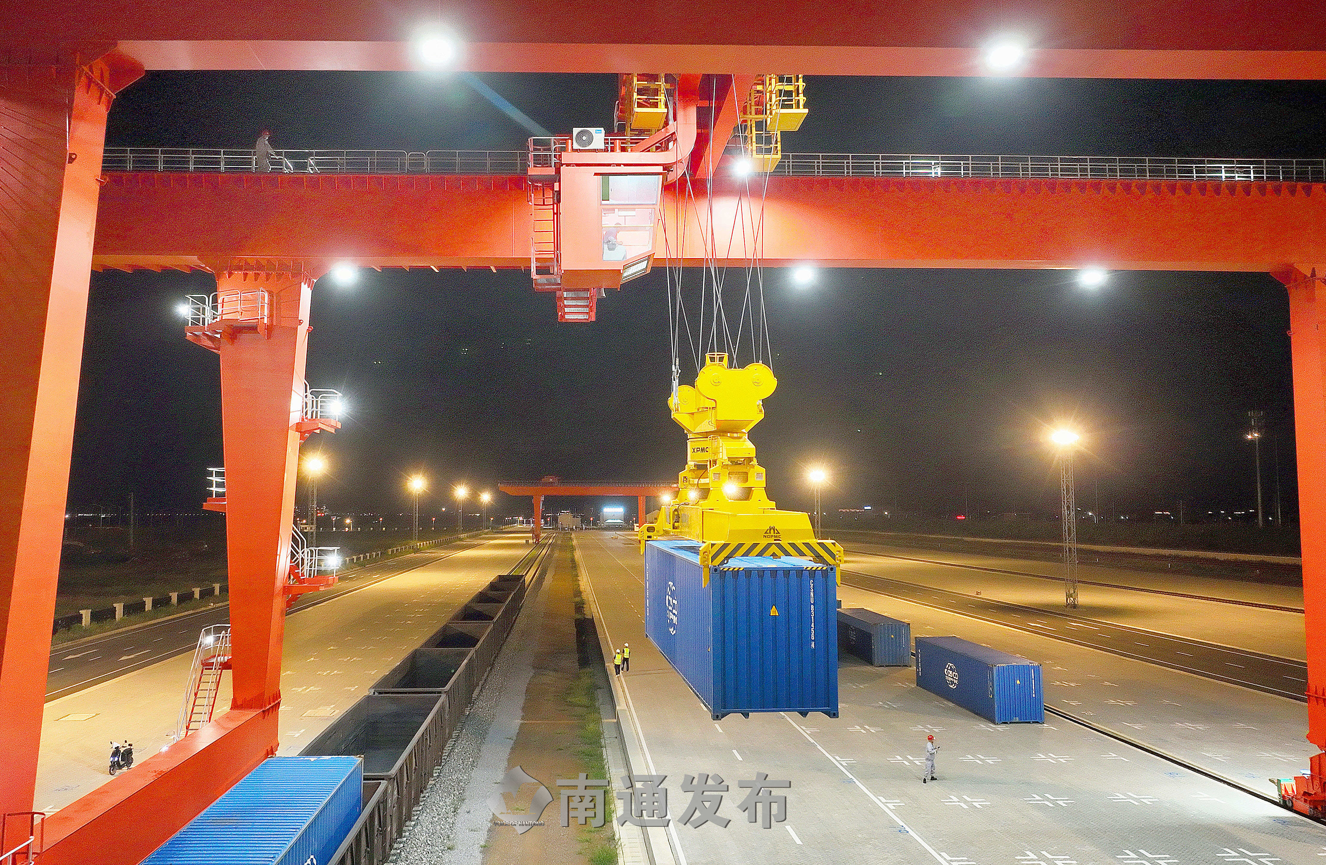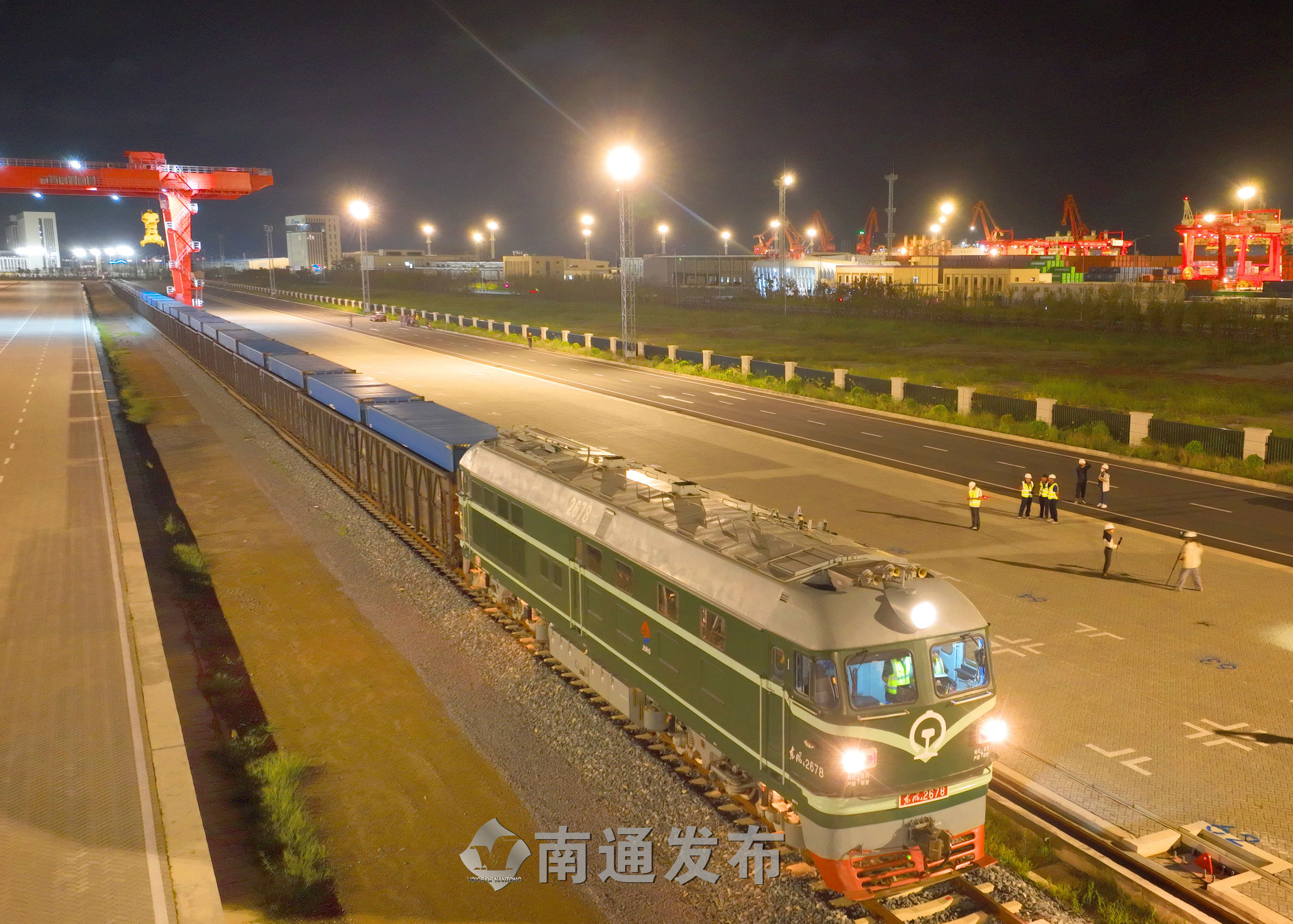 2024年9月26日晚,一列满载28车太阳能光伏板及组件的列车到达南通沿海集团洋吕铁路吕四港物流基地,标志着吕四港铁路专用线首趟集装箱海铁联运班列顺利开行。