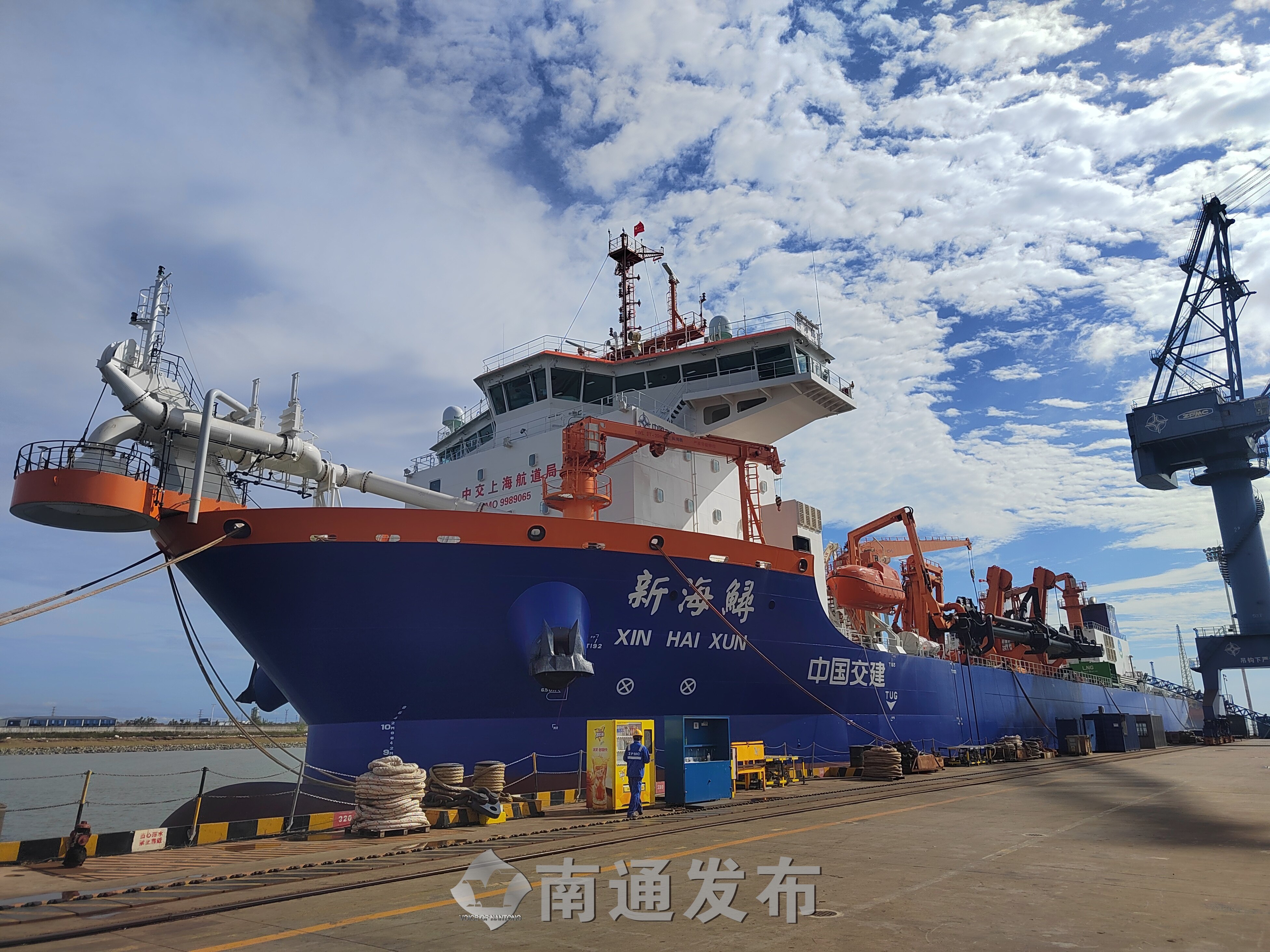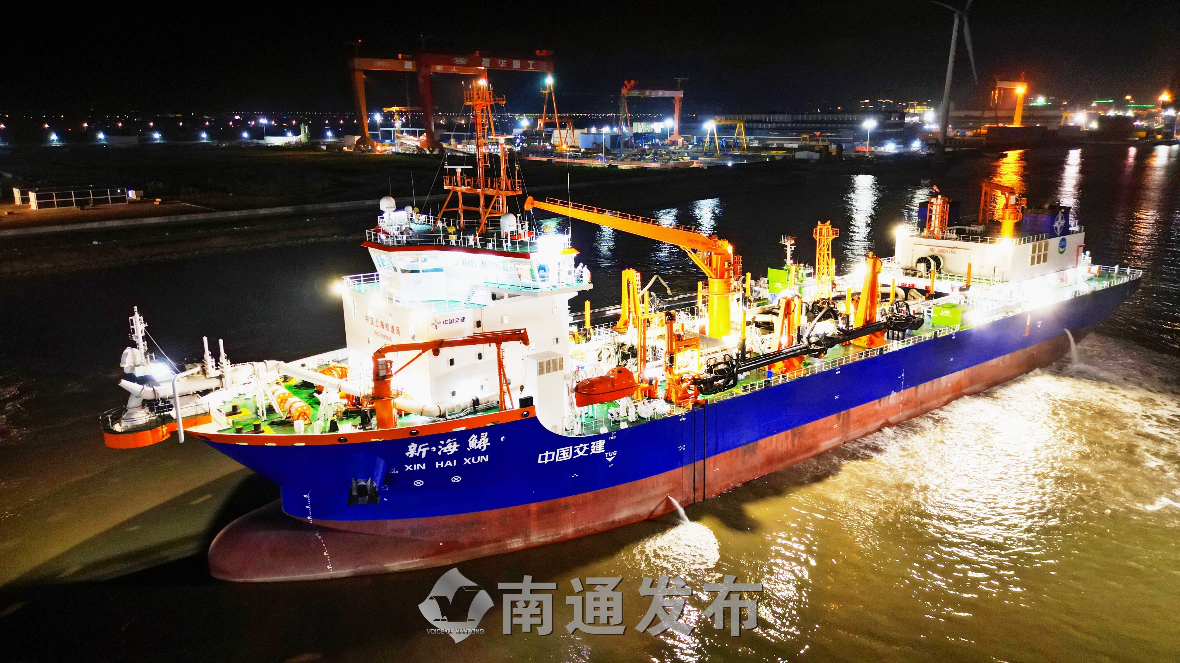 9月27日晚,上海振华重工建造的全球最大舱容、国内首艘15000方舱容双燃料动力耙吸式挖泥船“新海鲟”轮,在振华启东海工码头鸣笛解缆,正式开赴上海洋山港进行疏浚作业。