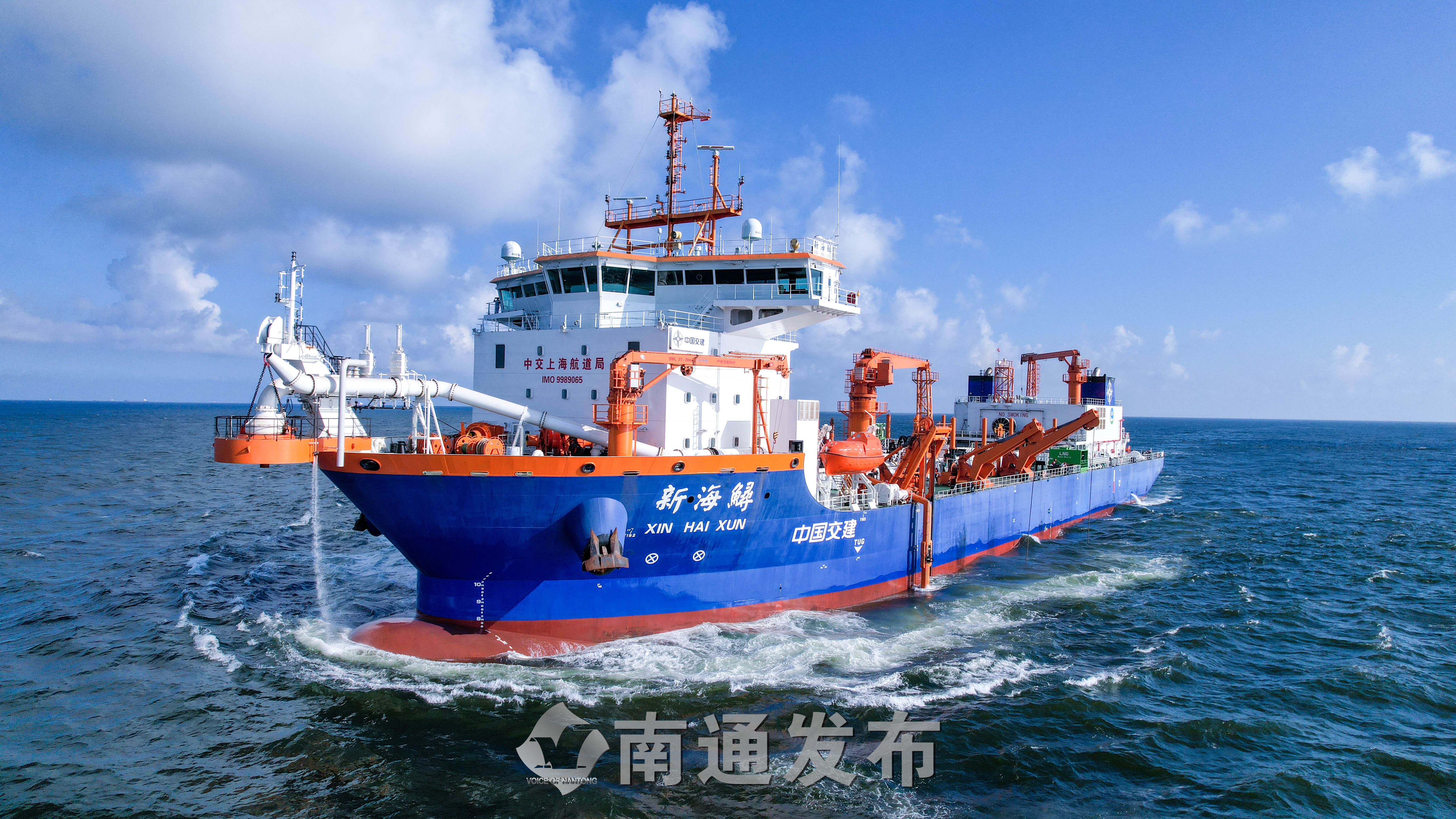 “新海鲟”轮总长155.7米、型宽32米、型深13.5米、满载吃水9.9米,泥舱最大舱容1.7万立方米,相当于6个国际标准游泳池。作为国内首艘双燃料动力耙吸式挖泥船,可随时切换使用液化天然气和柴油燃料作为动力系统,LNG动力相关技术填补了我国疏浚船舶在清洁能源使用和绿色低碳方面的空白。