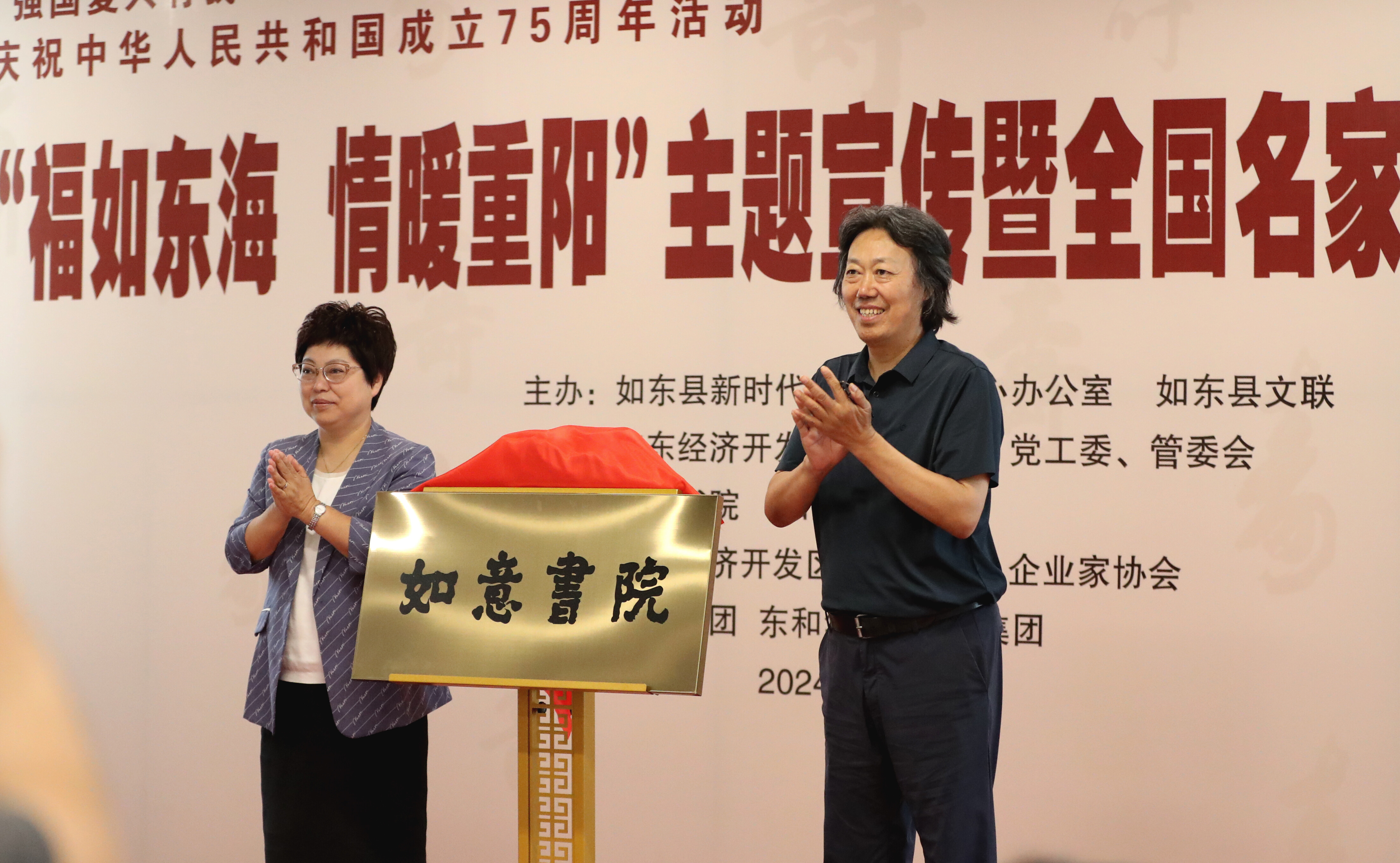 南通市委宣传部副部长、市新闻出版局(版权局)局长盛慧琴和中国文联美术艺术中心原主任、如意书院院长丁杰共同为如意书院揭牌。走进如意书院,一幅幅出自书法名家之手的“寿”字,笔力雄健,气韵生动,蕴含着深深的祝福,寄托美好期盼,为即将到来的重阳节增添温暖,构成讴歌盛世颂期颐的“万寿图”。这些作品秉承传统、与时俱进,思想精深、艺术精湛,风格多样、匠心独运,蕴含着艺术家们对健康长寿的美好祝愿和对生命智慧的热烈尊崇,对继承和弘扬中华传统文化,营造尊老敬老爱老的社会风尚具有重要意义。