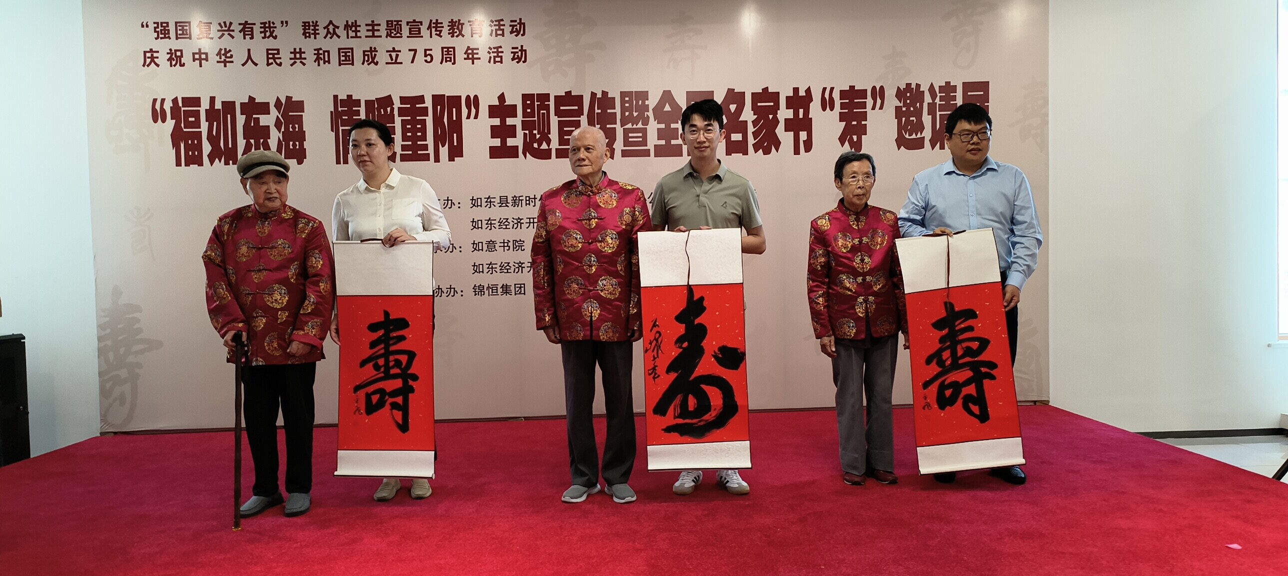 据悉,如东县民政部门还从全国名家书“寿”邀请展中选出12个名家书写的寿字制作成精美的挂历,将在重阳节前夕赠送给全县所有百岁以上老人,为他们送上重阳祝福。