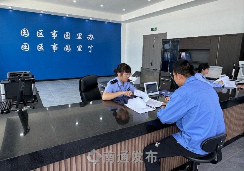 如东县洋口化学工业园濒临黄海,拥有在产化工企业78家,其中世界500强企业3家。如东县公安局将办证窗口搬进园区,成立洋口化学工业园警务联动中心,提供易制毒化学品相关许可证办理等9项涉及化工企业生产经营的高频业务以及户政等其他52项业务办理,为企业及员工实现“就近办、一门办、一次办”的便捷服务。“以前办证要去县城,来回要花费一两个小时,现在不出园区就能办理,只需十分钟车程。”园区企业、江苏优嘉植物保护有限公司采购部业务员张先生深有感触地说,“自从办证点搬进了园区,我们节省了大量时间,真是太方便了!”