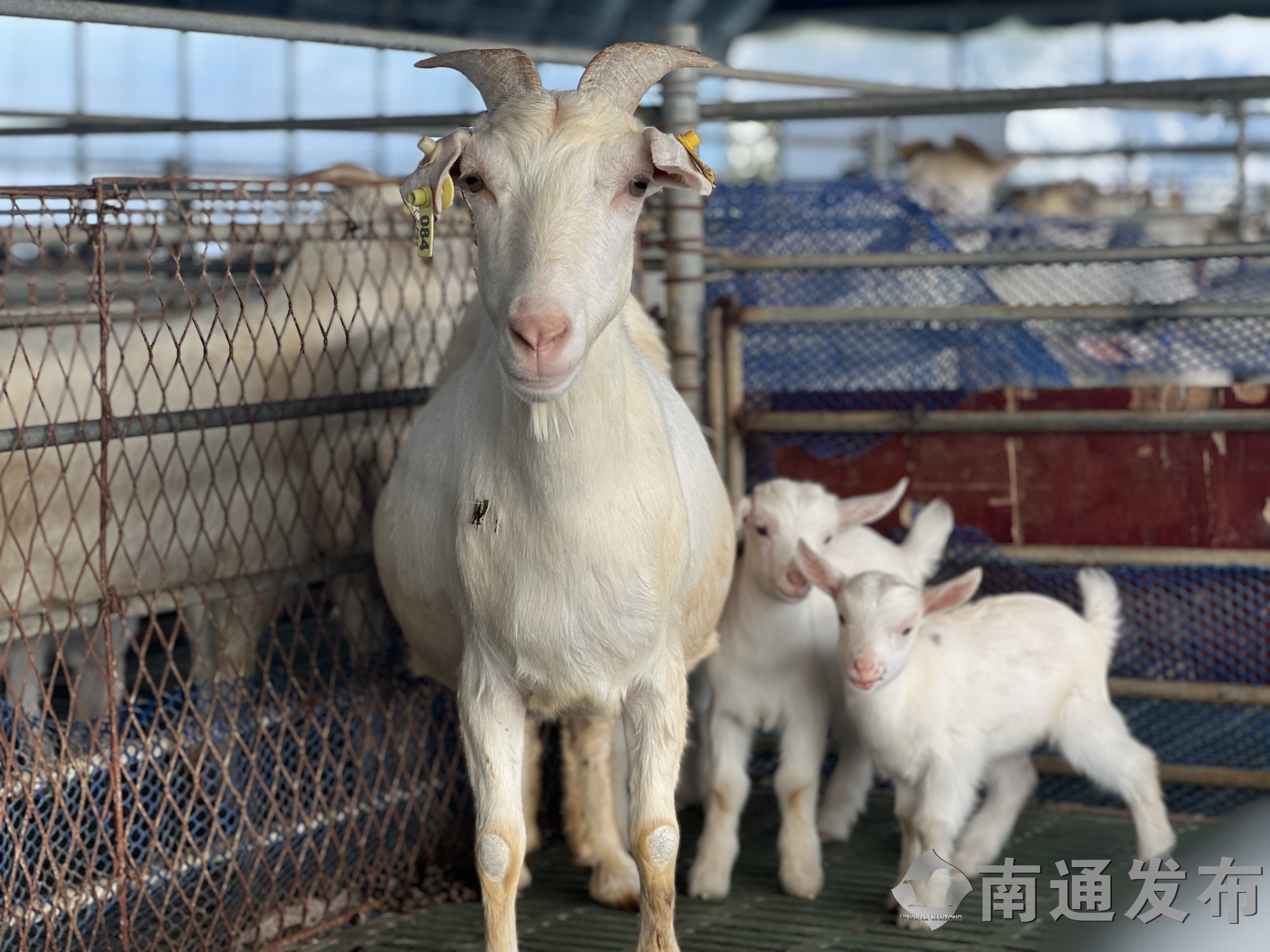 步入联排的羊棚,消杀后的羊舍干净整洁,一只只膘肥体壮的海门山羊正欢快地攀爬登高,咩咩叫声此起彼伏;刚出生不久的小羊羔依偎在母羊身边,哺乳、撒欢……在他们顶部装有7个保温灯,去年陈尹还特地为它们建造了广阔的草地跑道。陈尹介绍,目前公司里的11个羊棚已有三分之一被清空,羊舍里还剩下约7000只羊,但最近正值出栏高峰期,“压根不愁卖”。