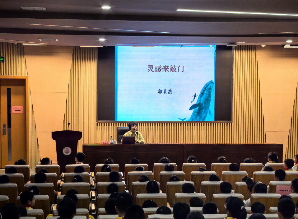 “以上几位妈妈的对话,大家猜猜看,是什么原因呢?”15日下午,知名儿童文学作家、江苏省语文特级教师、江苏省教学名师郭姜燕受邀来到同和小学,与200多名江海小记者一起分享自己的灵感故事,探讨阅读的意义,交流写作的“秘诀”。这也是今年江海小记者总站举办的“文艺名家进校园”系列活动之一。