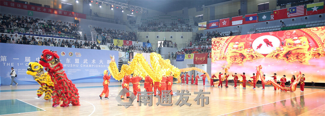3日上午,第一届中国-东盟武术大赛在南通大学体育馆开幕,来自文莱、柬埔寨、印度尼西亚、老挝、马来西亚、缅甸、菲律宾、新加坡、泰国、越南东盟十国和中国的内地及香港、澳门地区等200支代表队的运动员、教练员、裁判员共计1600多人参赛。