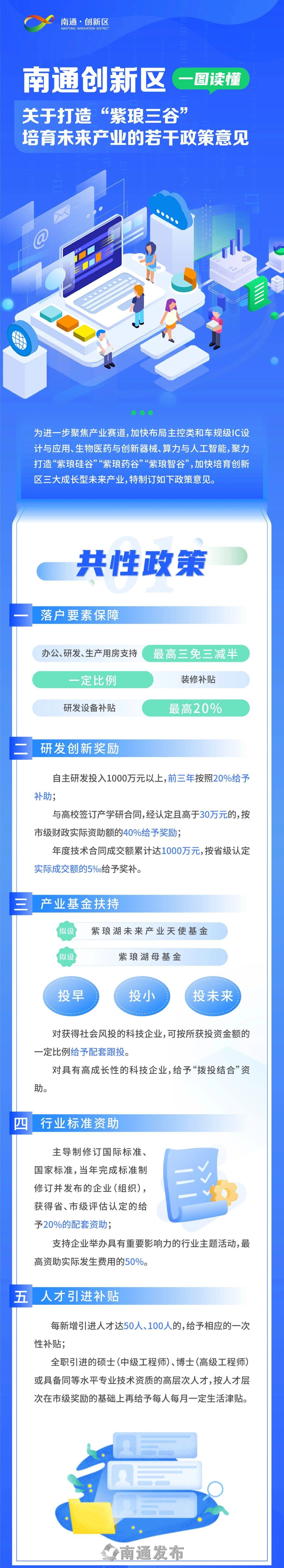 昨日,南通创新区正式发布关于打造“紫琅三谷”、培育未来产业的若干政策意见,为加快培育创新区三大成长型未来产业蓄势赋能。