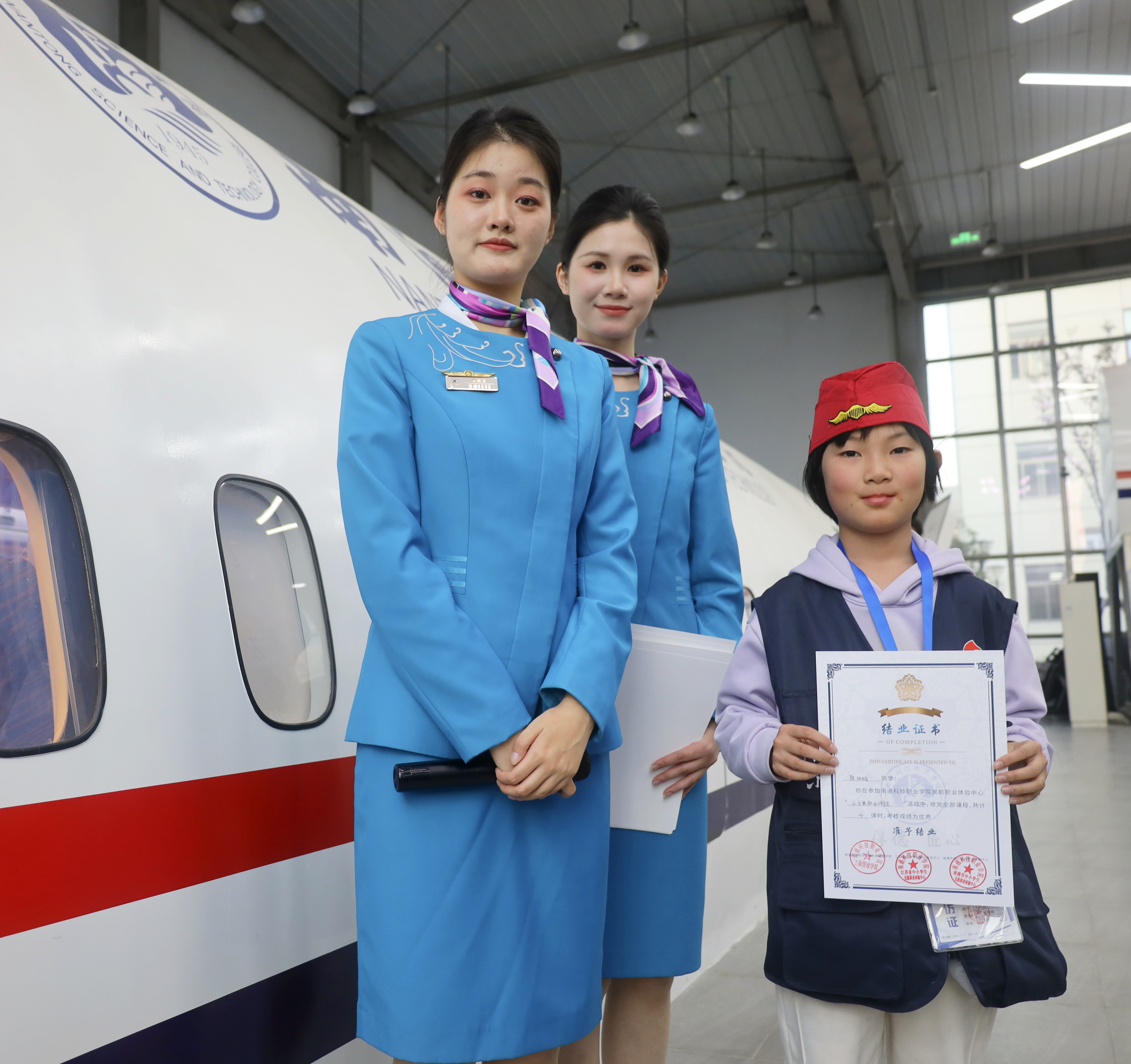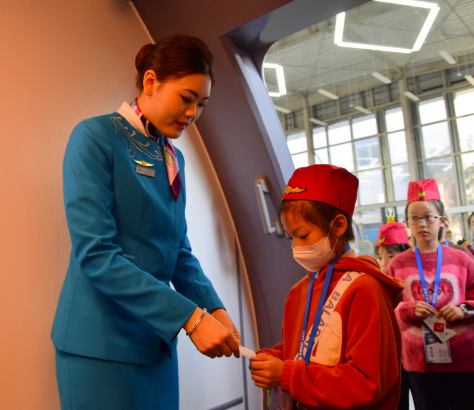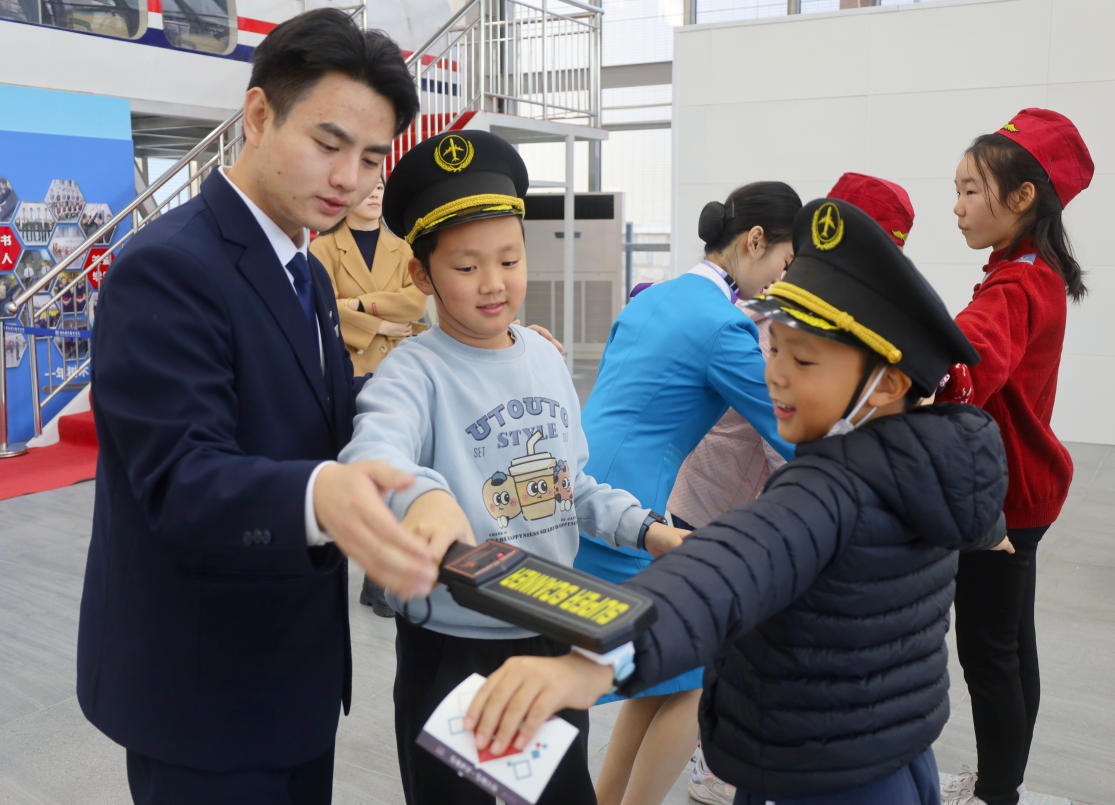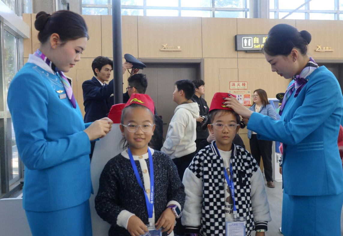 “哇!这里好像真的机场!”“长大后,我也要成为一名空中乘务员!”“乘机流程是怎样的?这一过程中又有哪些注意事项?”一走进民航职业体验中心,小记者们就七嘴八舌地议论起来,对即将参加的活动环节充满期待。